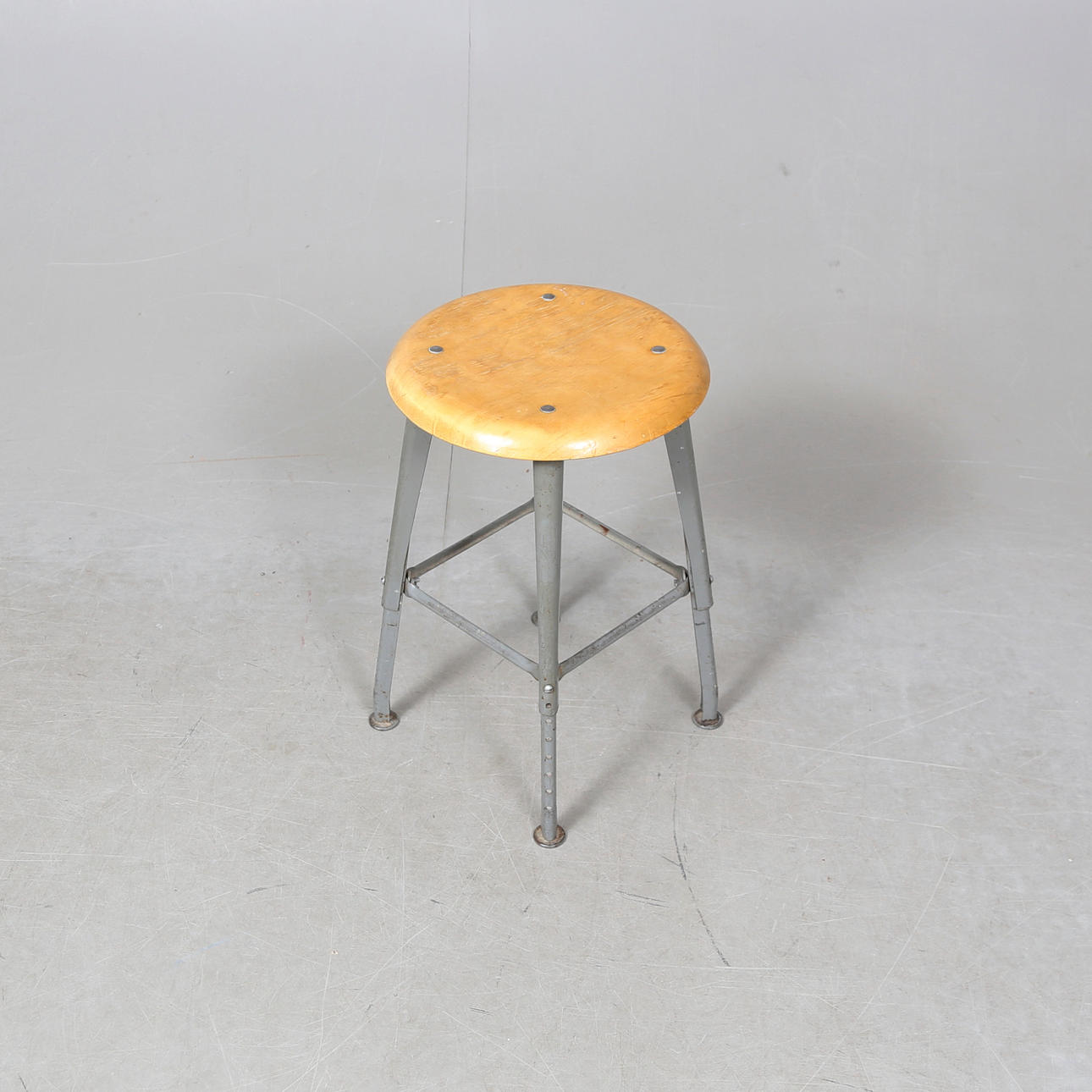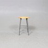Wooden seat, adjustable metal frame.