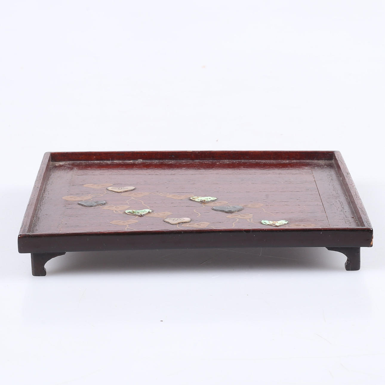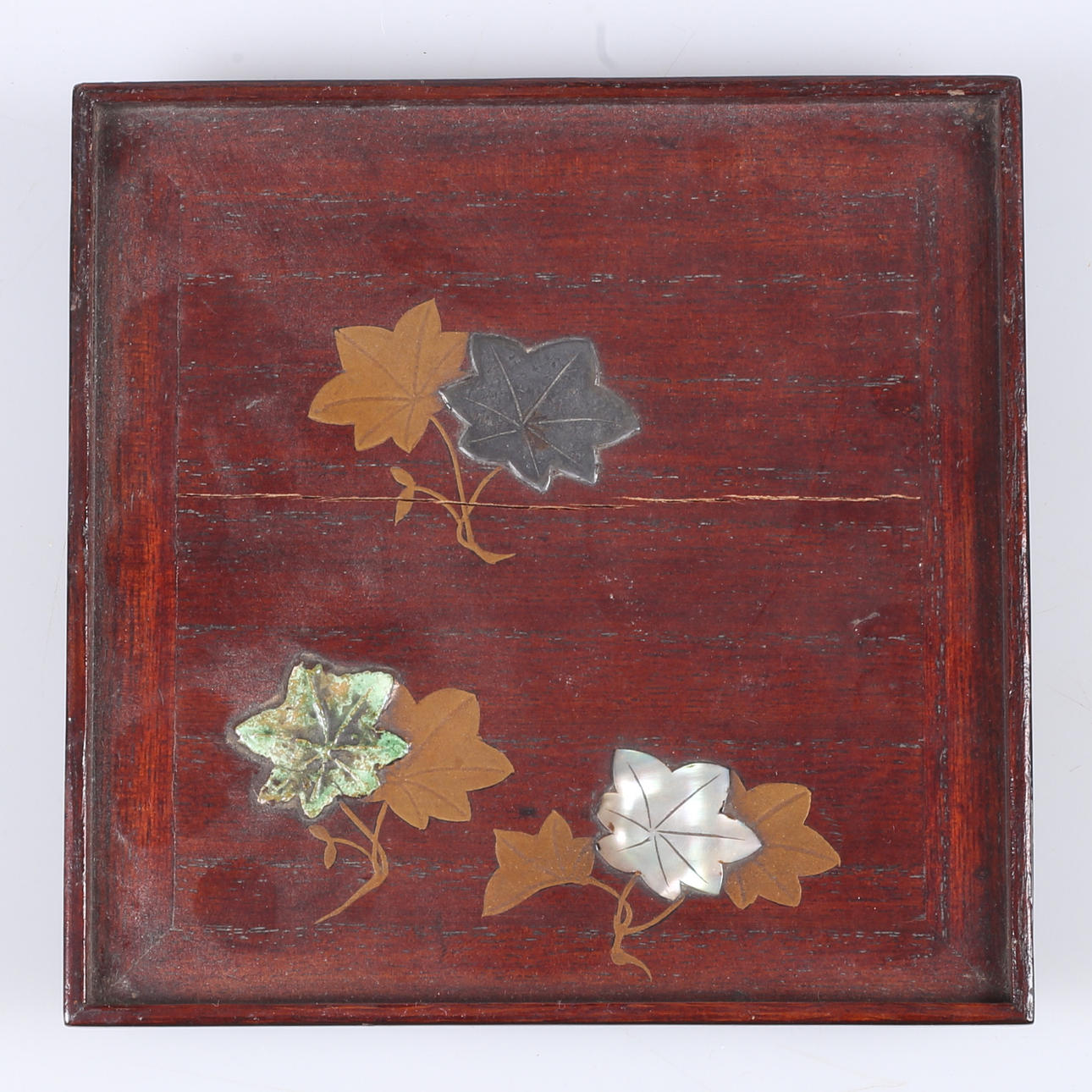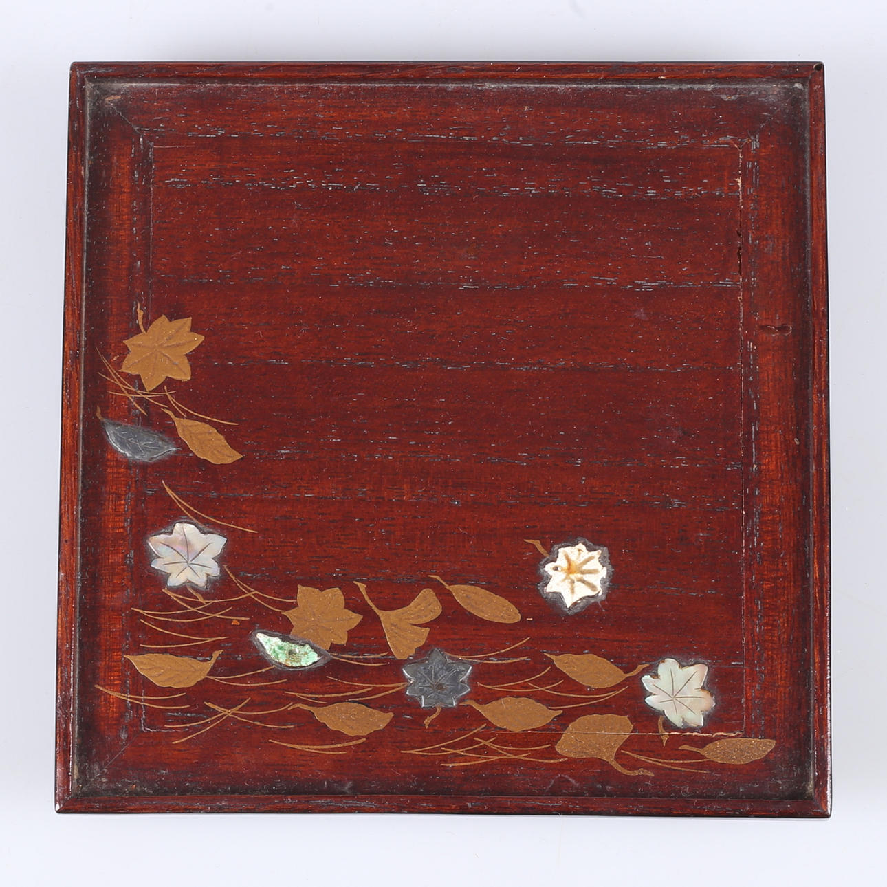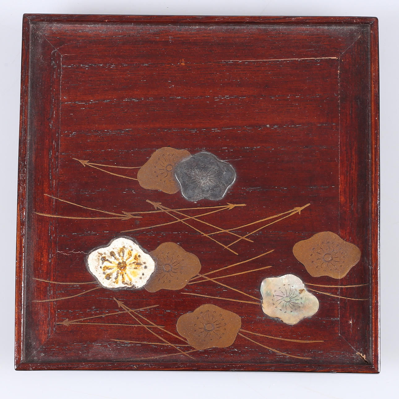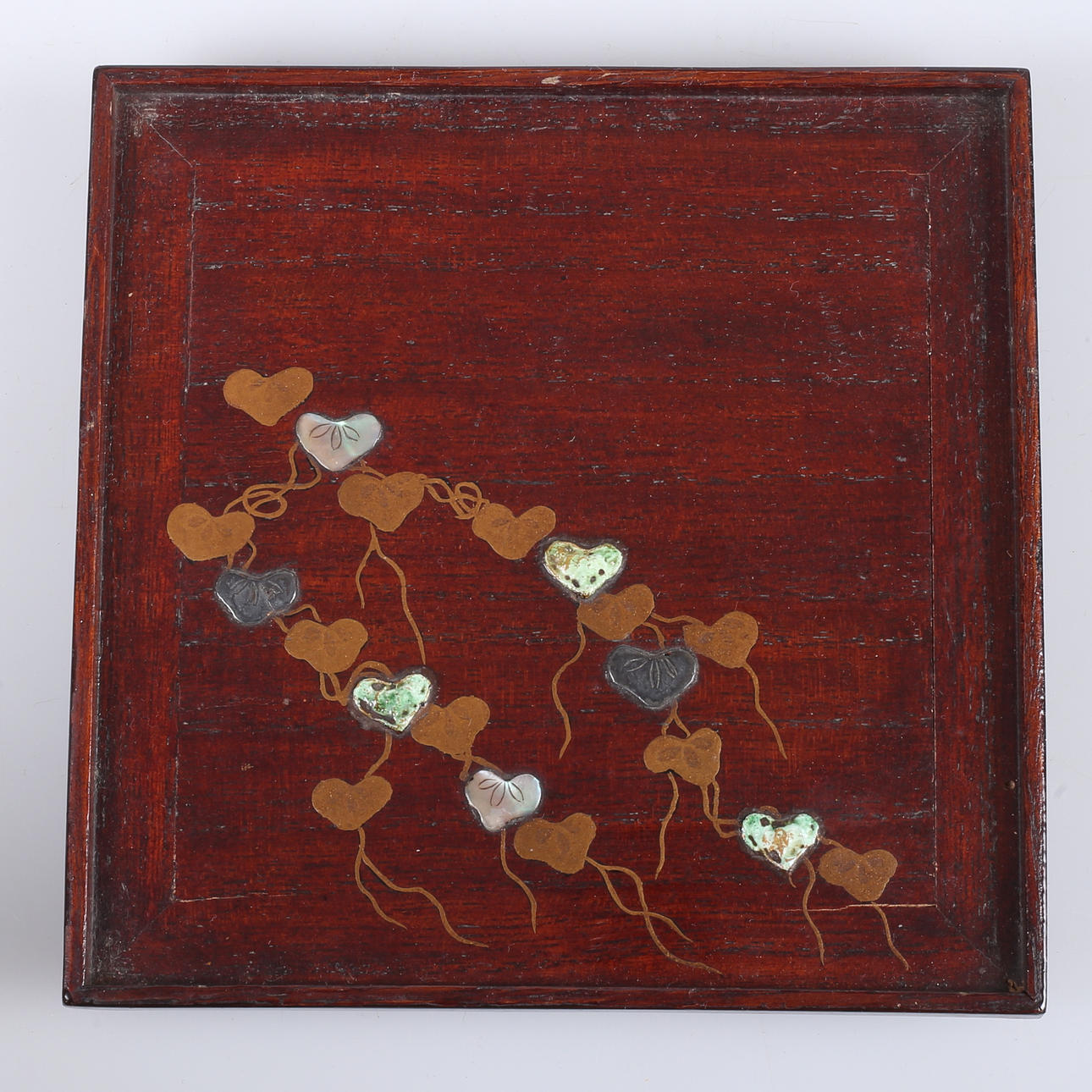 Lacquer works skmaki-e work with decor of e.g. a. mother of pearl and metal. Dimensions 13.7x13.7 cm.