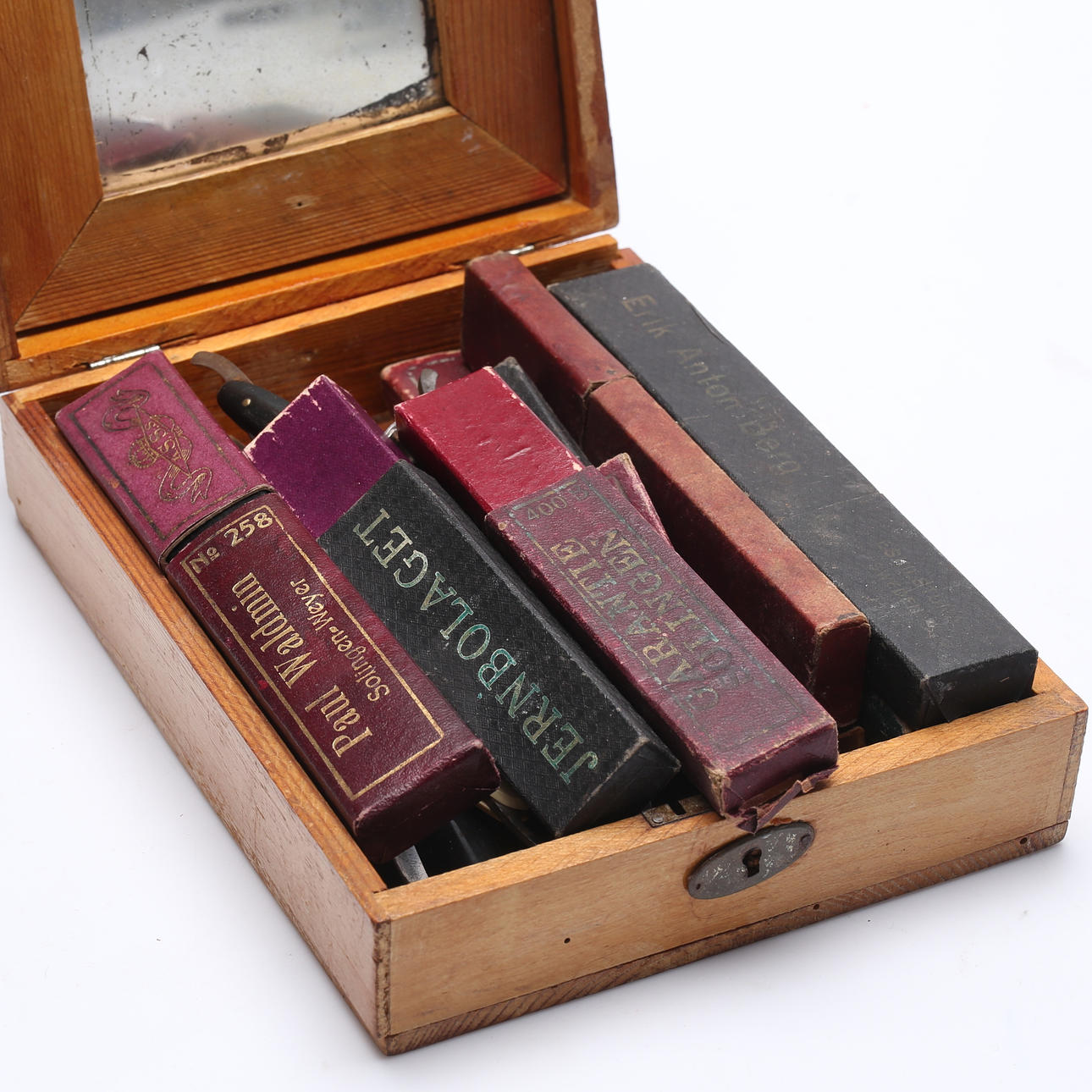 Wear, scratches. Mirror with damage to the foiling. Leaf, tarnish, notch. Case with damage.