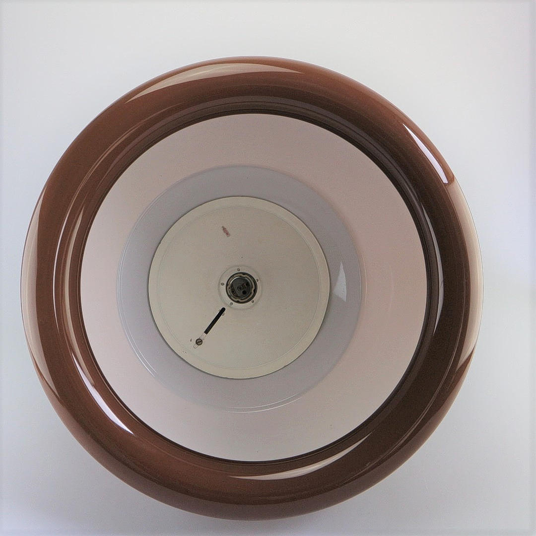 Röhm Damrstadt, plexiglas, designer hanging lamp, with chrome optic cover, diameter of shade: 50 cm.