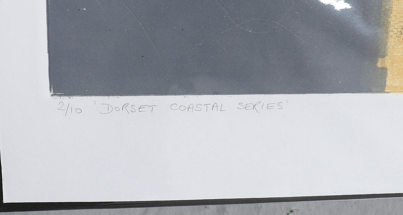 Helen’s work is landscape derived. She prints semi-abstract tactile images based on the colours and forms of the coastline. Helen is drawn to detailed fragments of the landscape, the patterns and textures of rocks, rusting metal, peeling paint - the sense of the past pressing upon the present. Helen likes to work directly from the landscape, walking, observing and gathering information by sketch book, photograph and found materials. Back in her studio she explores ideas through the process of printmaking often starting with quick mono print sketches then moving onto the more labour intensive process of creating a collagraph printing plate or an etching.