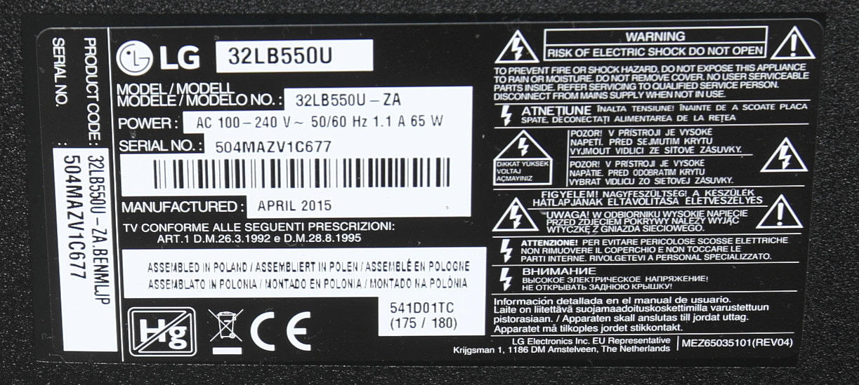 1366x768. 0.9 GHz processor and 1.25 GB RAM. Wi-Fi Ready, DLNA and Magic Remote Ready. Remote control. Length 73, width 21, height 48 cm.