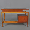Scaffolding in beech, linked legs. Hurts with two drawers in teak veneer. Top with two underlying drawers in teak veneer.