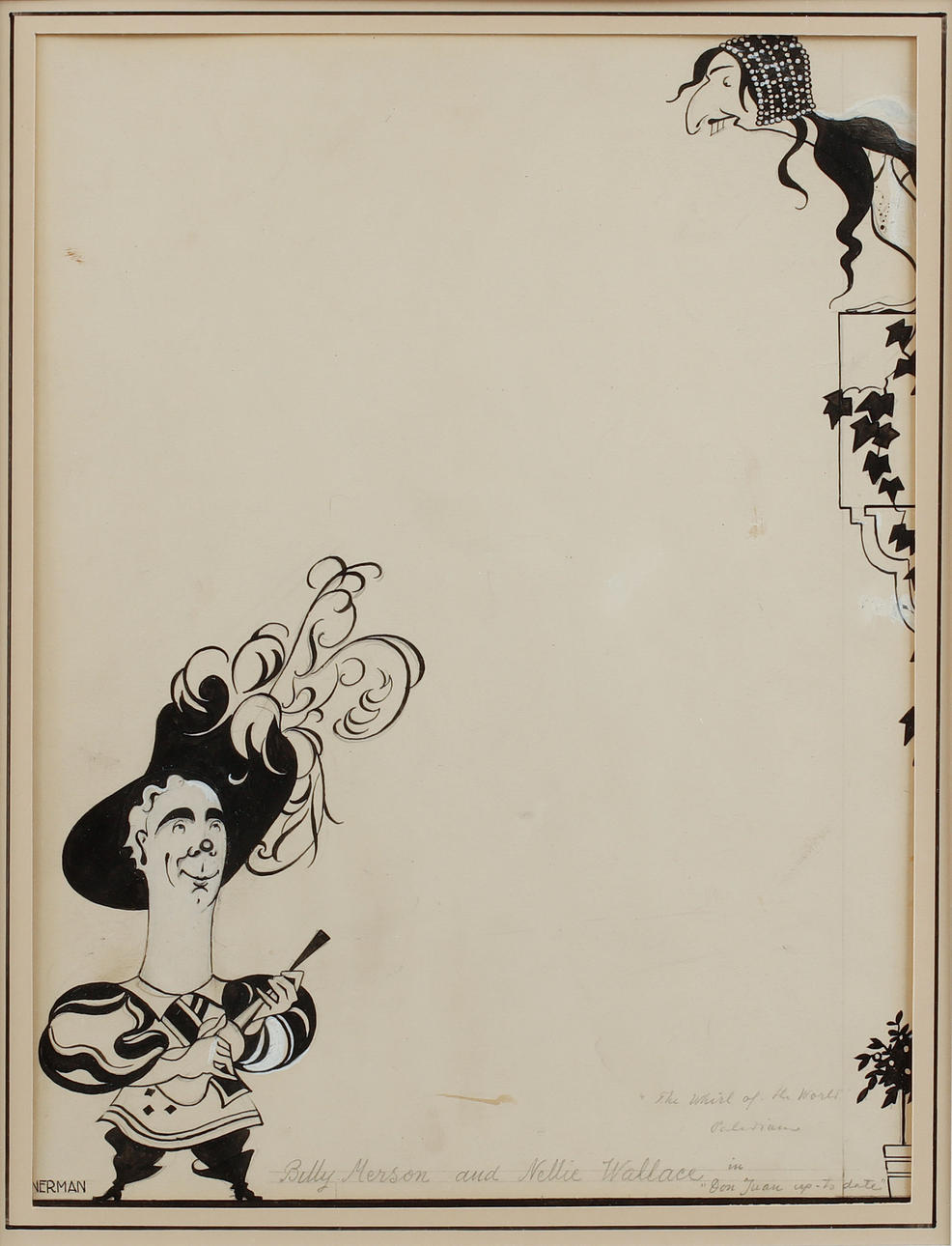 EINAR NERMAN. Billy Merson and Nellie Wallace. Ink drawing, signed.