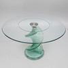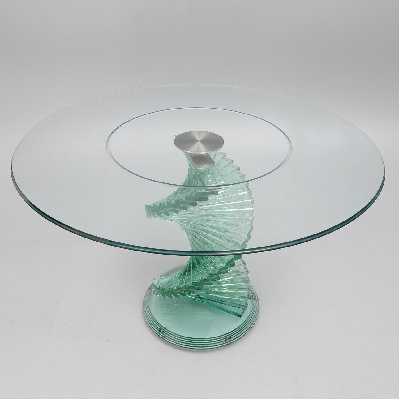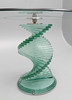 the circular top on a green tinted 'spiral staircase' column and stepped circular base, 120cm diameter x 78cm high.