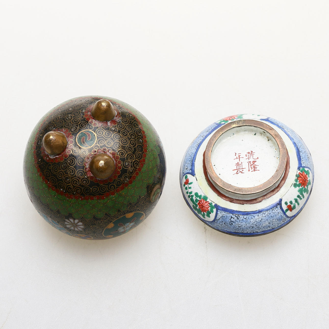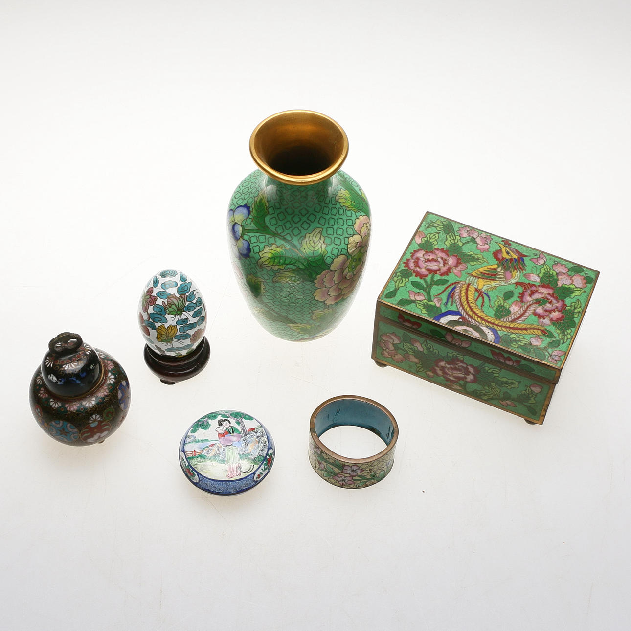 Vase, casket, lid boxes, napkin rings and decorative eggs. The height of the vase is approx. 17 cm.