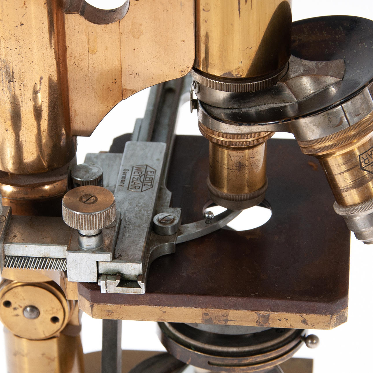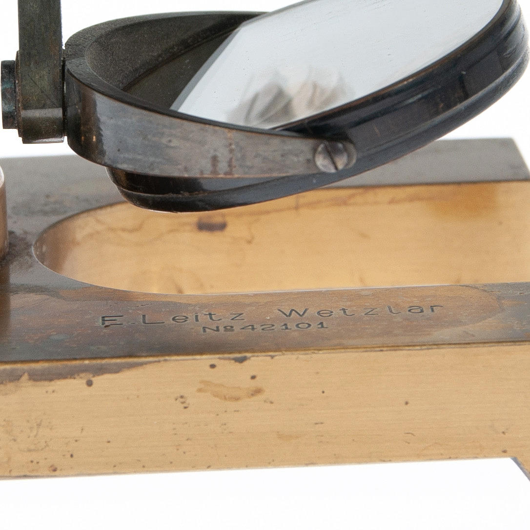 Not complete, comes with various eyepieces (both Leitz and other manufacturers). Brass and black anodized metal. Comes in a wooden box (probably excl. later).