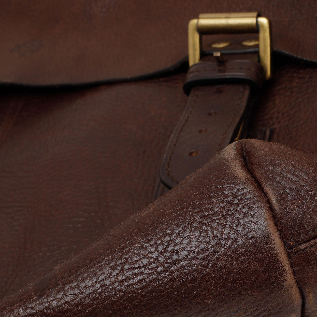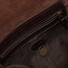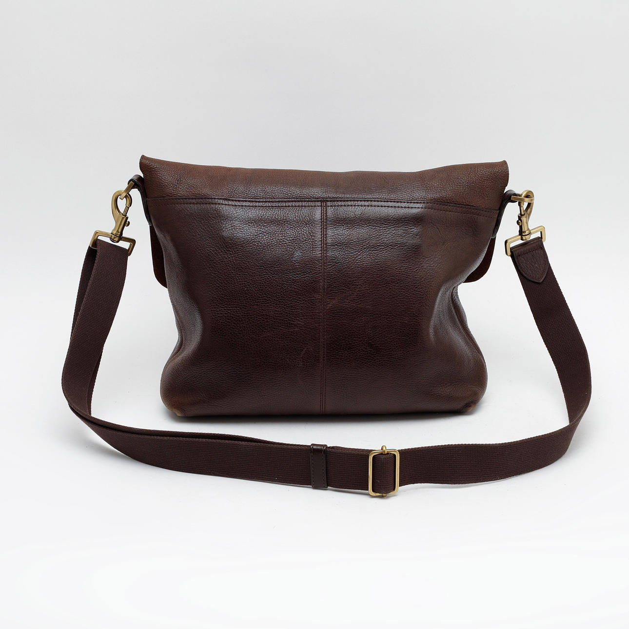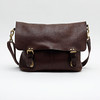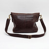 Shoulder bag in brown leather with brass details. Interior compartment with zipper. Numbered plaque. Adjustable shoulder strap.