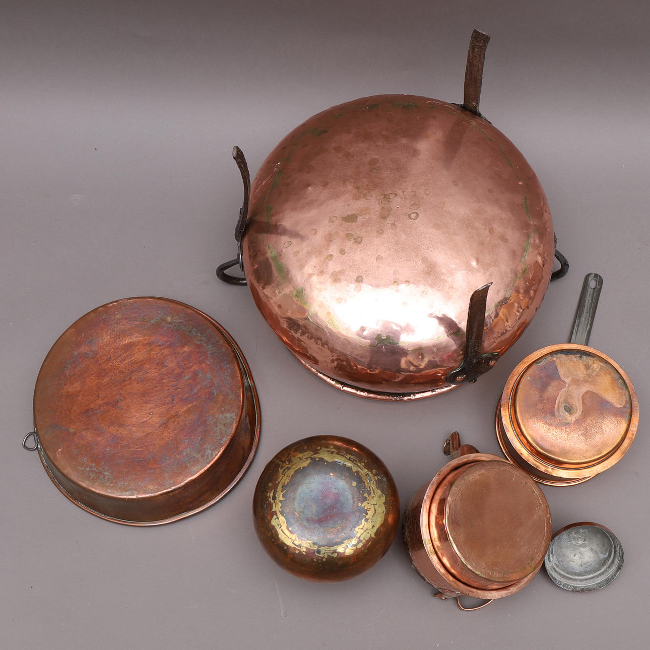 Cauldron, approx. 36 cm high. Form, approx. 30 cm in diameter. Stew, Skultuna. Coffee pot, copper-plated metal.