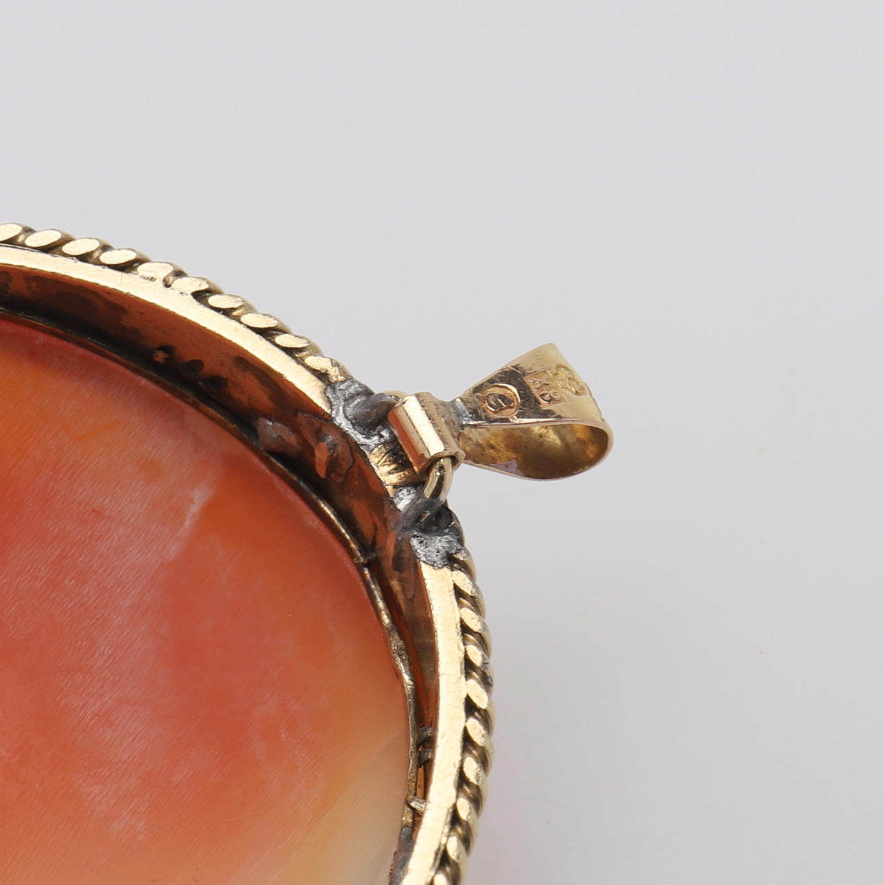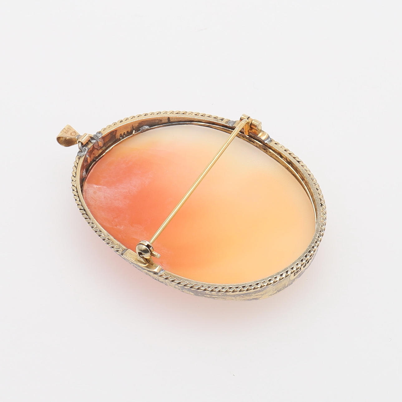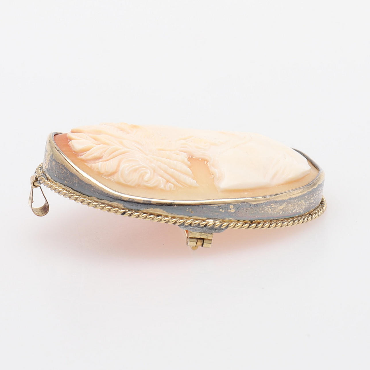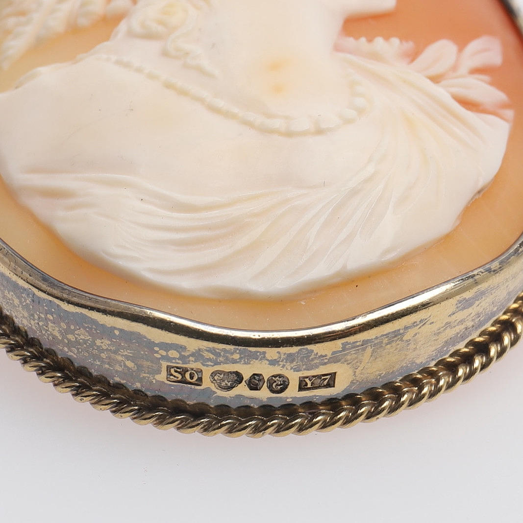 Mount of gilt silver stamped Gothenburg 1925, with shell cameo with cut-out classical woman, height 6 cm.