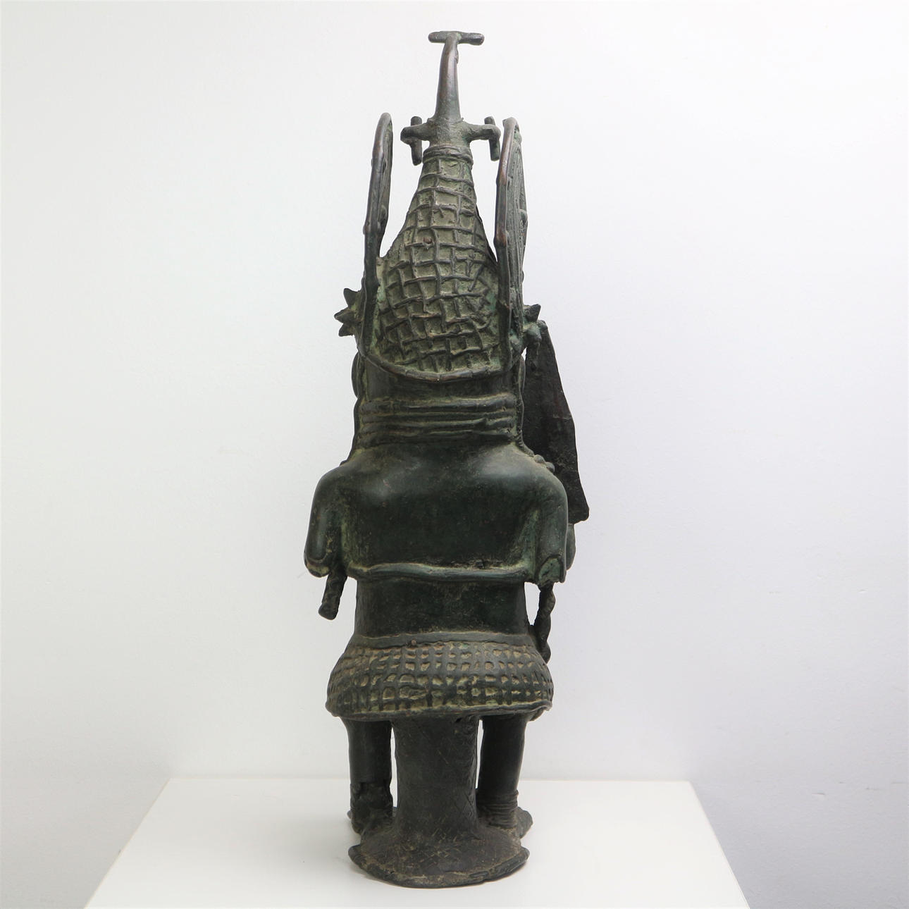 Benin bronze warrior sculpture, height: 50.5 cm, circa 1940, from the BENIN region in Equatorial Africa.Beautiful of quality and amazing detail.