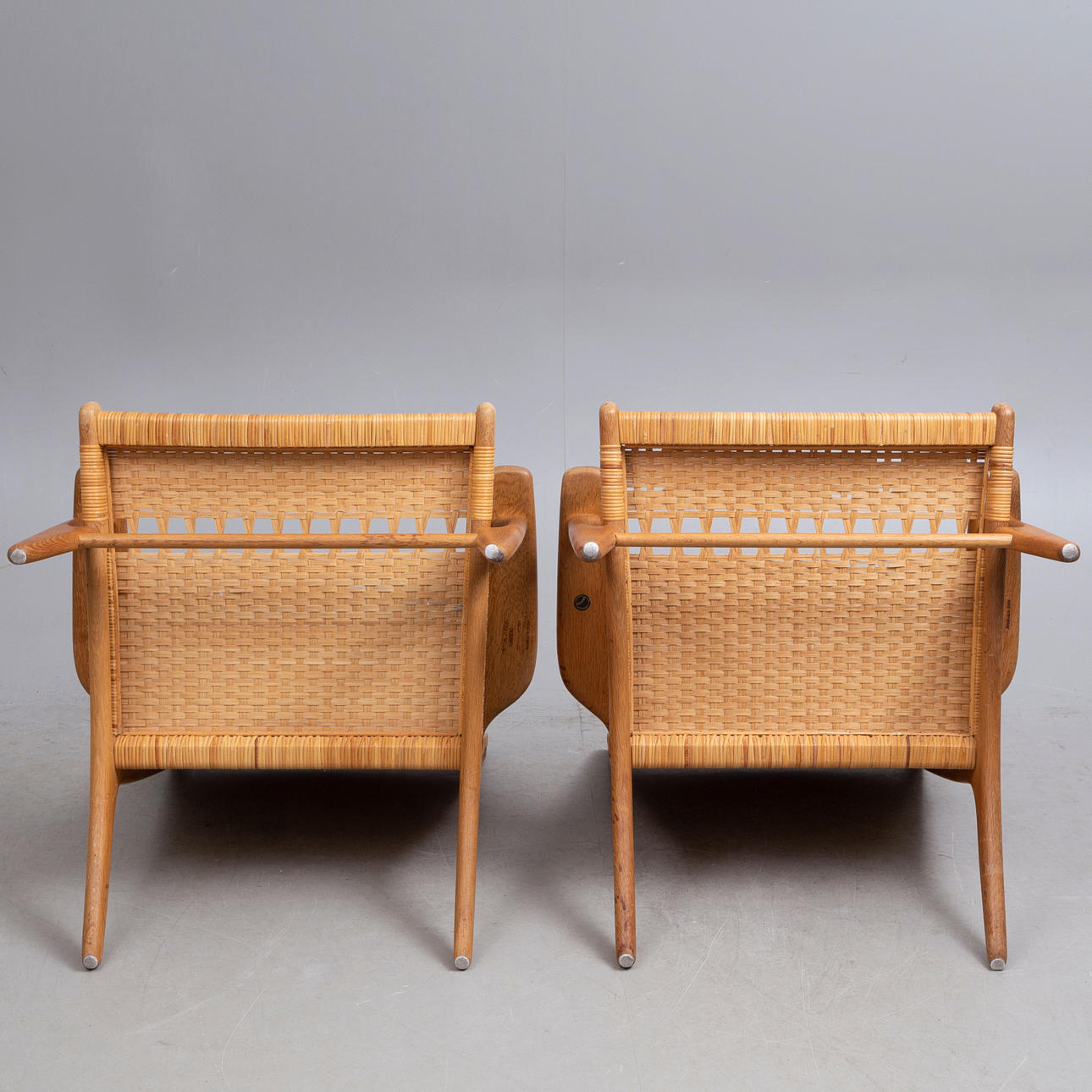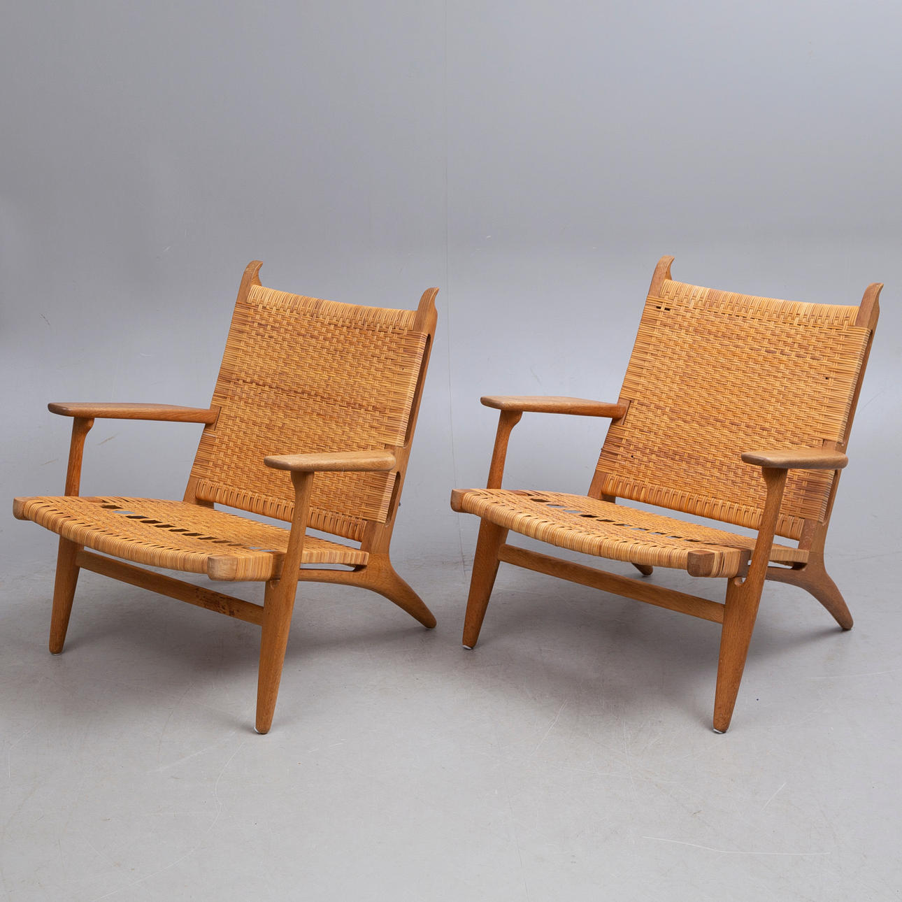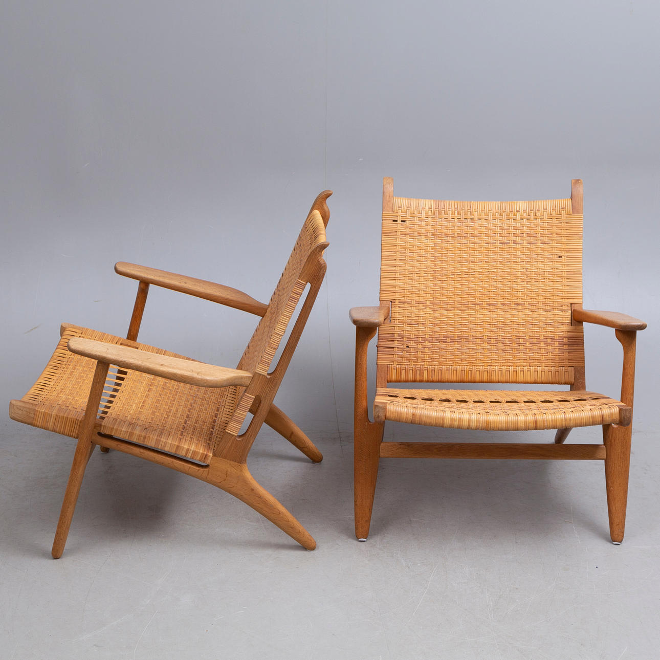 HANS J WEGNER. 2 ARMCHAIRS, CH 27, signed, mid-20th century.