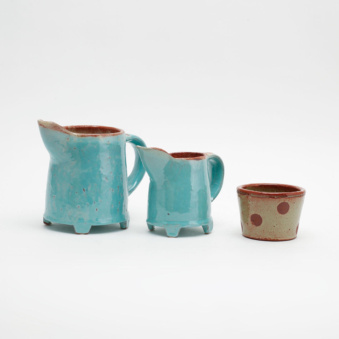 OIDENTIFIERAD KONSTNÄR. 2 jugs & bowl, ceramic, signed GR.
