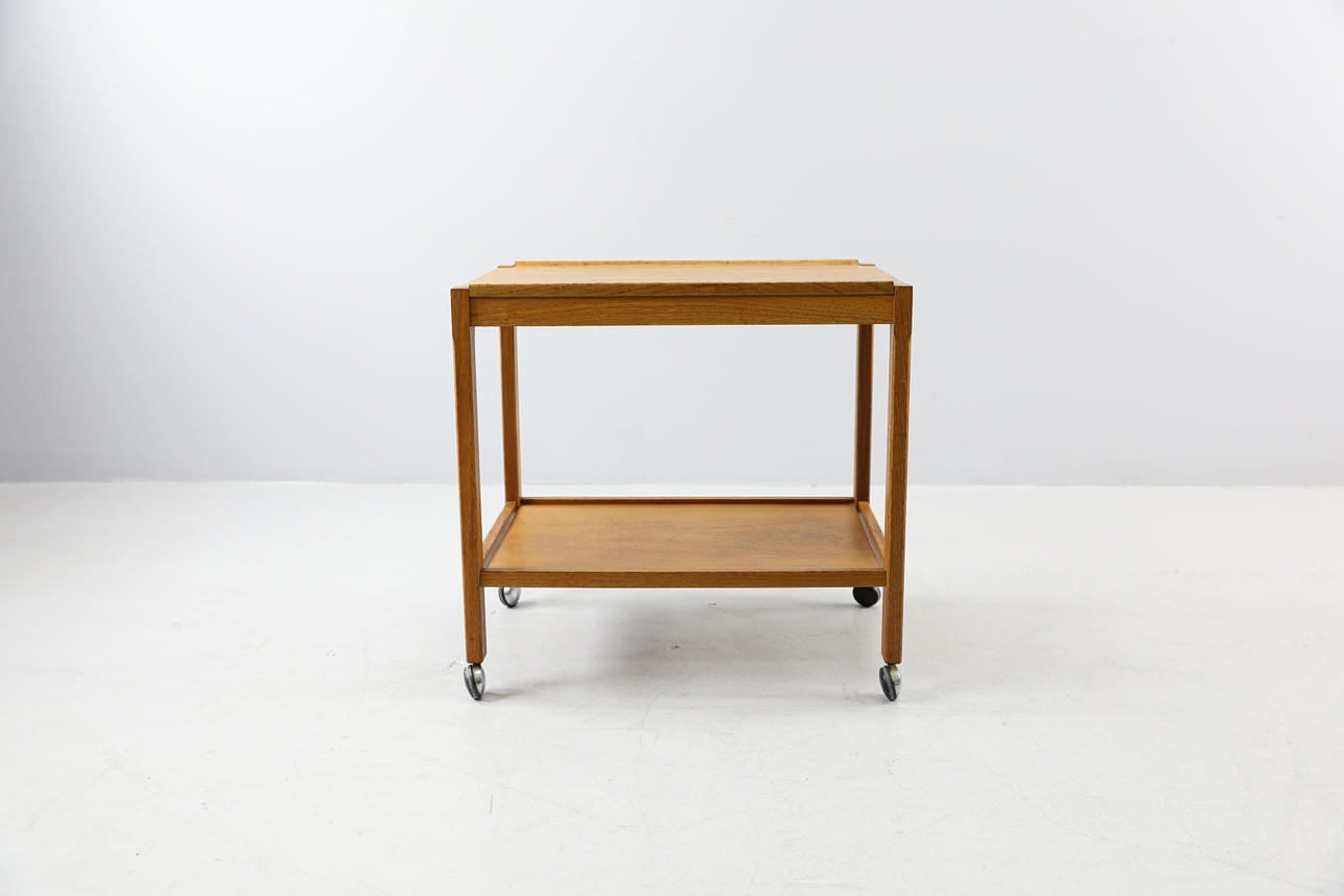 Removable tray on top. On wheels. Possibly Gustavssons Möbelfabrik Brittatorp. Height 60 cm Length 63 cm Width 45 cm.