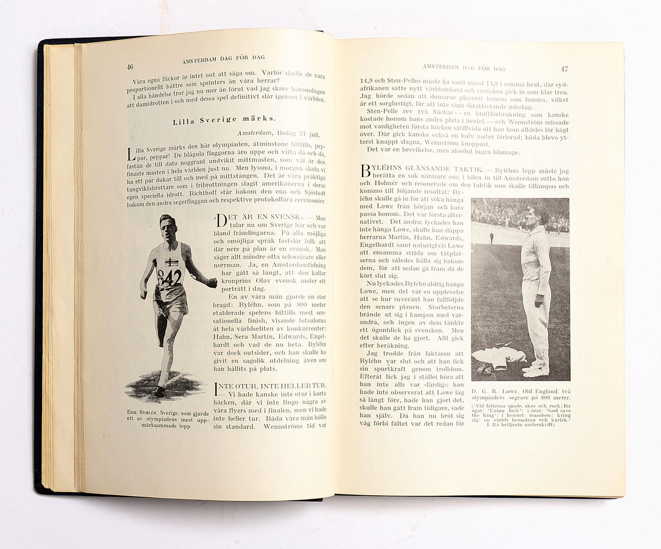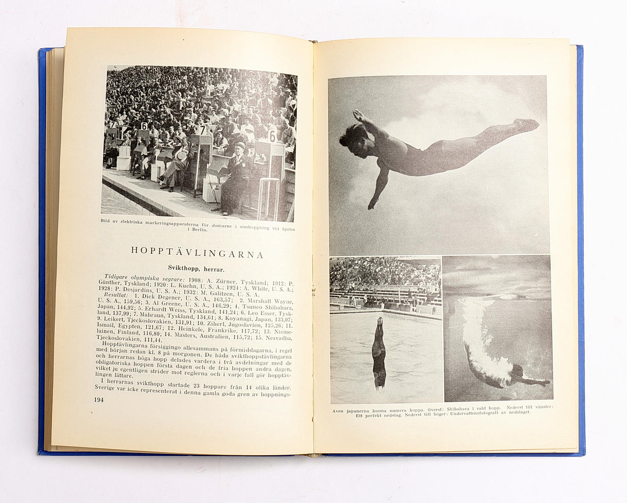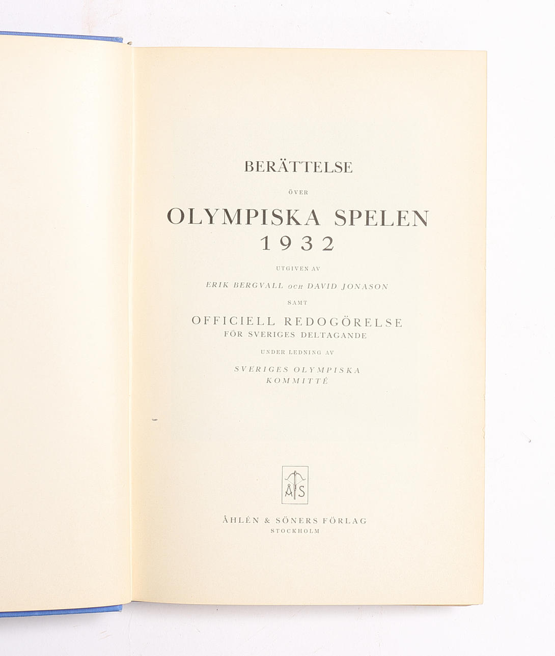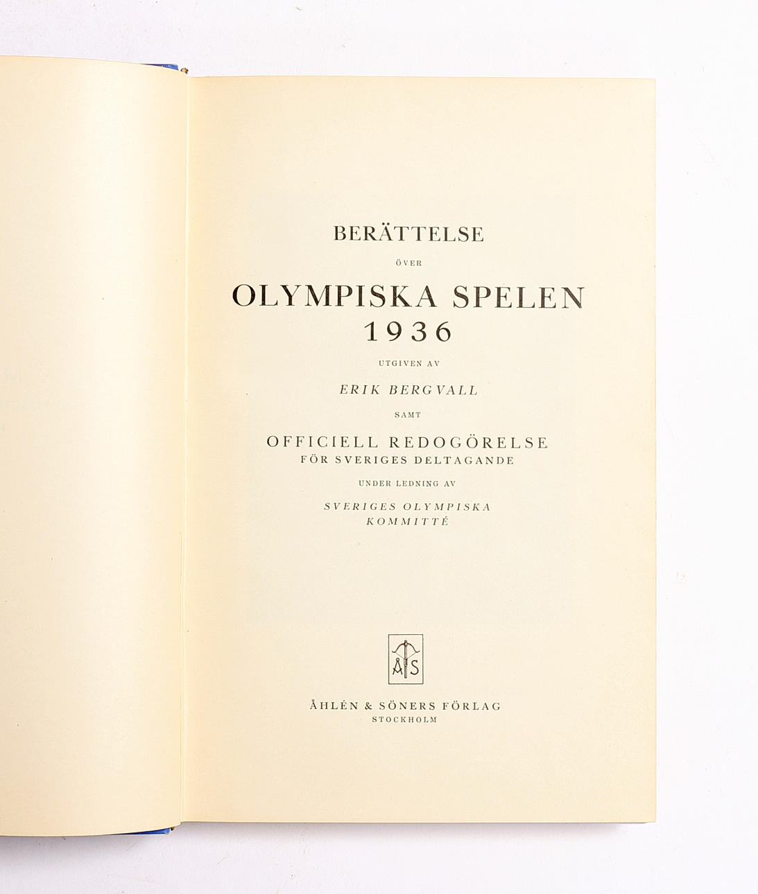 V. The Olympiad. official statement. Red+d E Bergvall, 1913, decorated cloth + The Olympic Games in Antwerp 1920, red. E Bergvall, 1920, 4:o, hcloth + IX Olympiad, Amsterdam 1928, ed. E Bergvall, 1928, cloth + Olympiad in Lake Placid 1932, ed. E Bergvall, cl + XI Olympiad Berlin 1936, ed. E Bergvall 1936, cloth + doublet, leather binding.