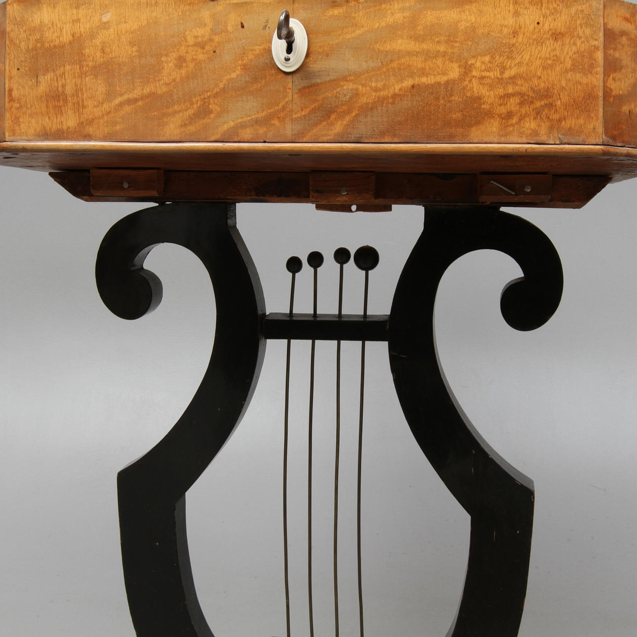166411. SEW TABLE, so-called lyre table, 1800s.