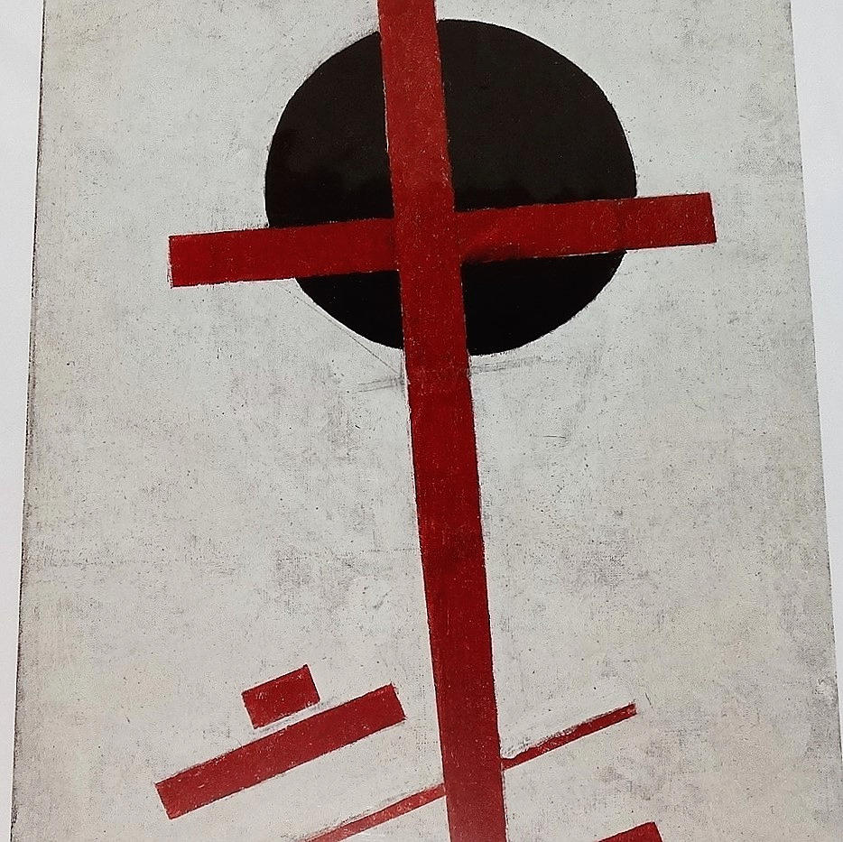 KAZIMIR MALEVICH. Red cross on black circle, offset.