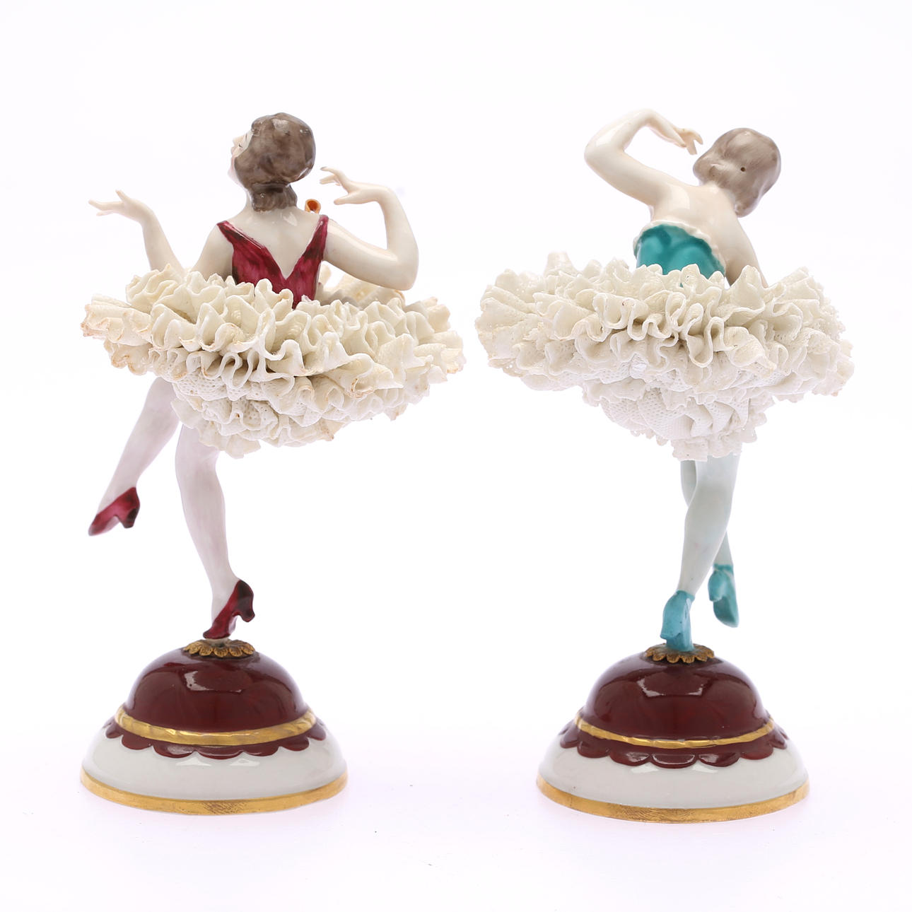 1668011. FIGURINES, a pair, ballerinas, Dresden.