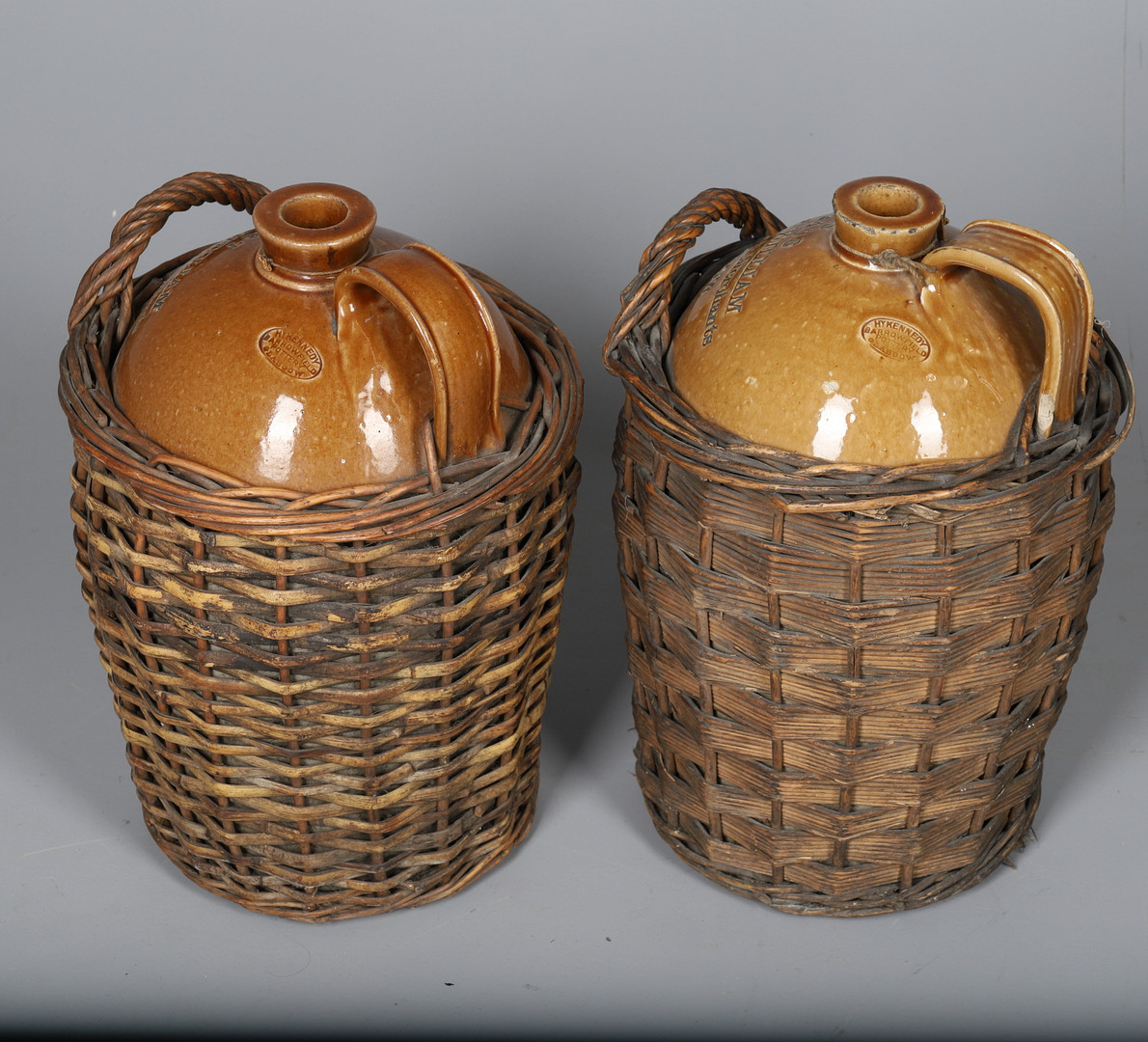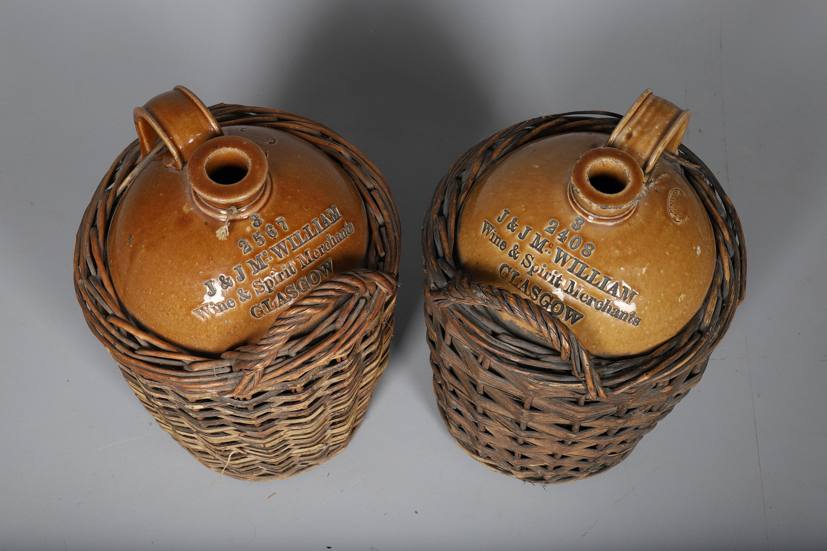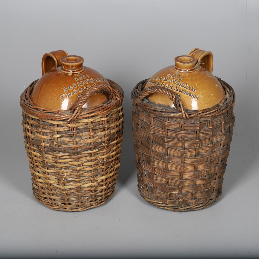 1671414. TWO J & J MCWILLIAM WINE FLAGONS IN WICKER BASKETS.
