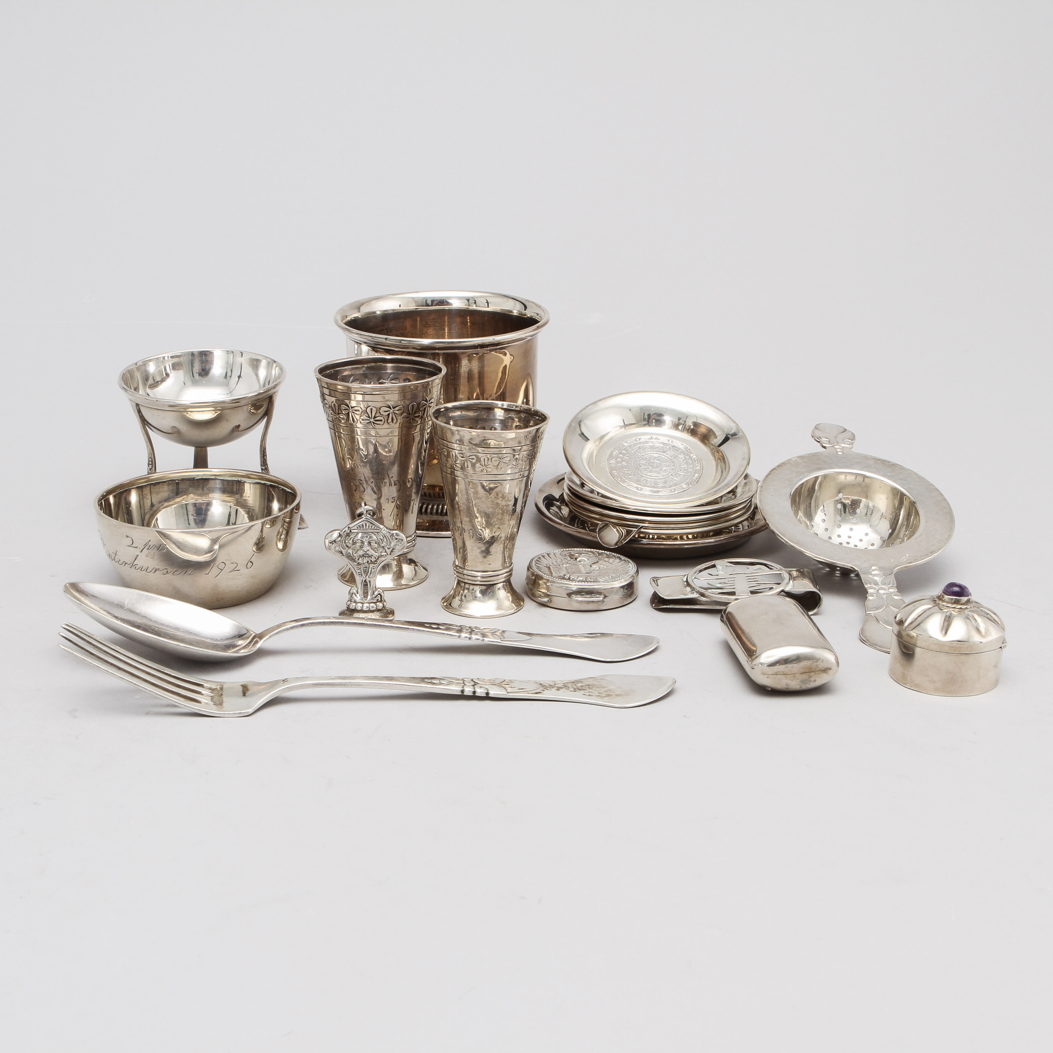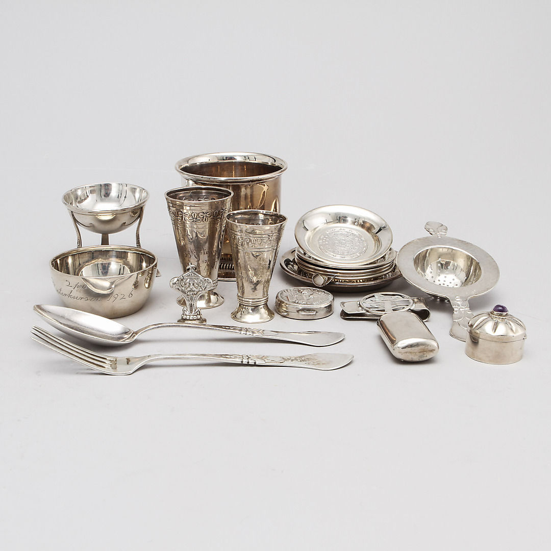 167885. SILVER ITEMS, 18 pcs. 1900s. Weight about 520 grams.