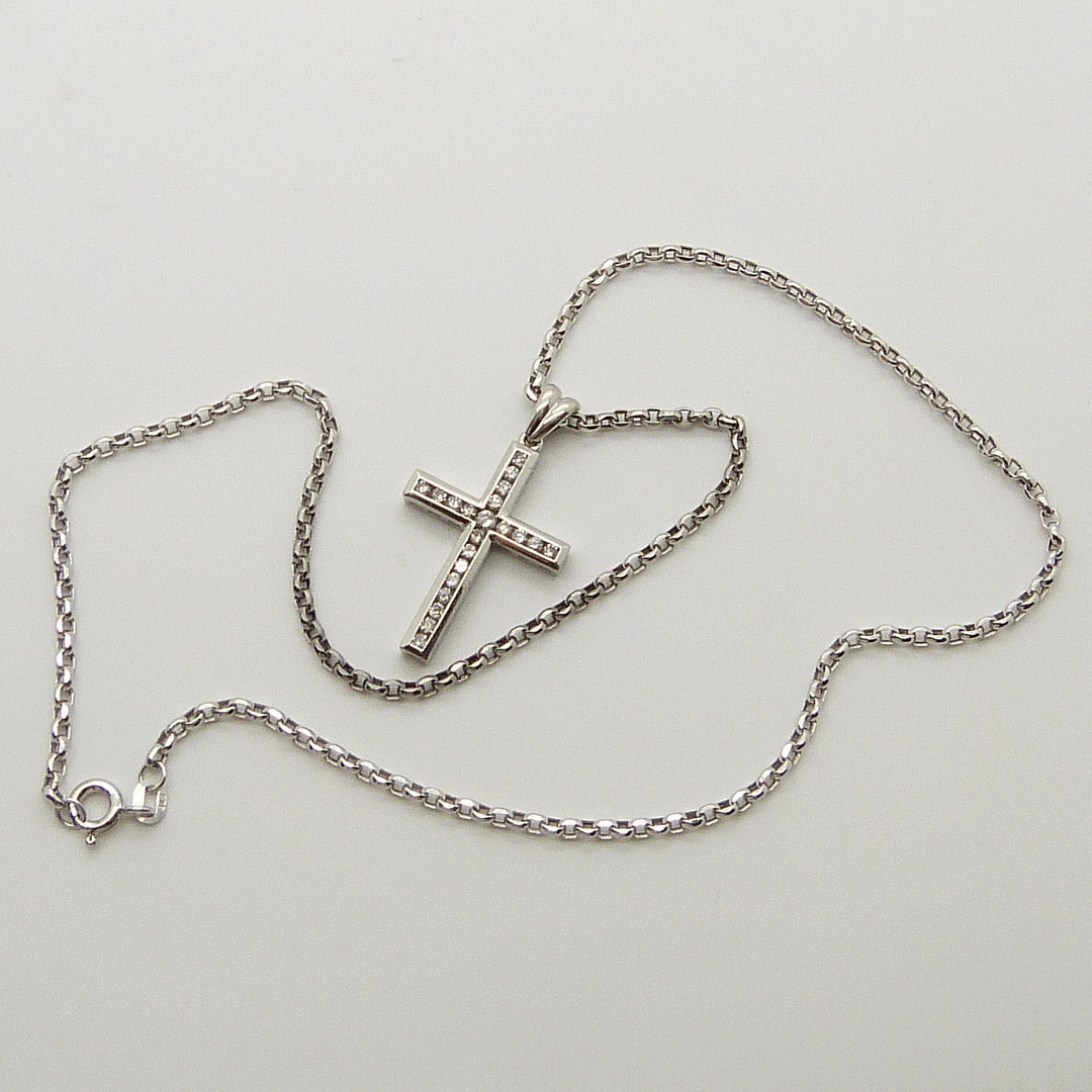 1682605. 0.50CT DIAMOND CROSS & CHAIN.