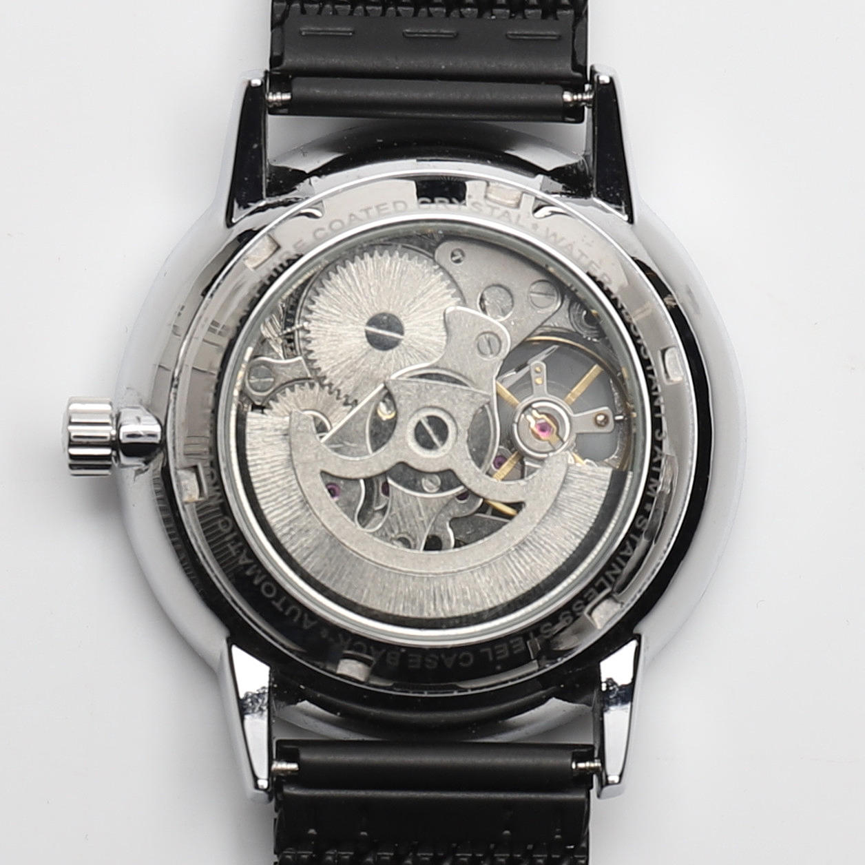 Automatic. Partially dark dial with stick indexes. Diameter about 40 mm.