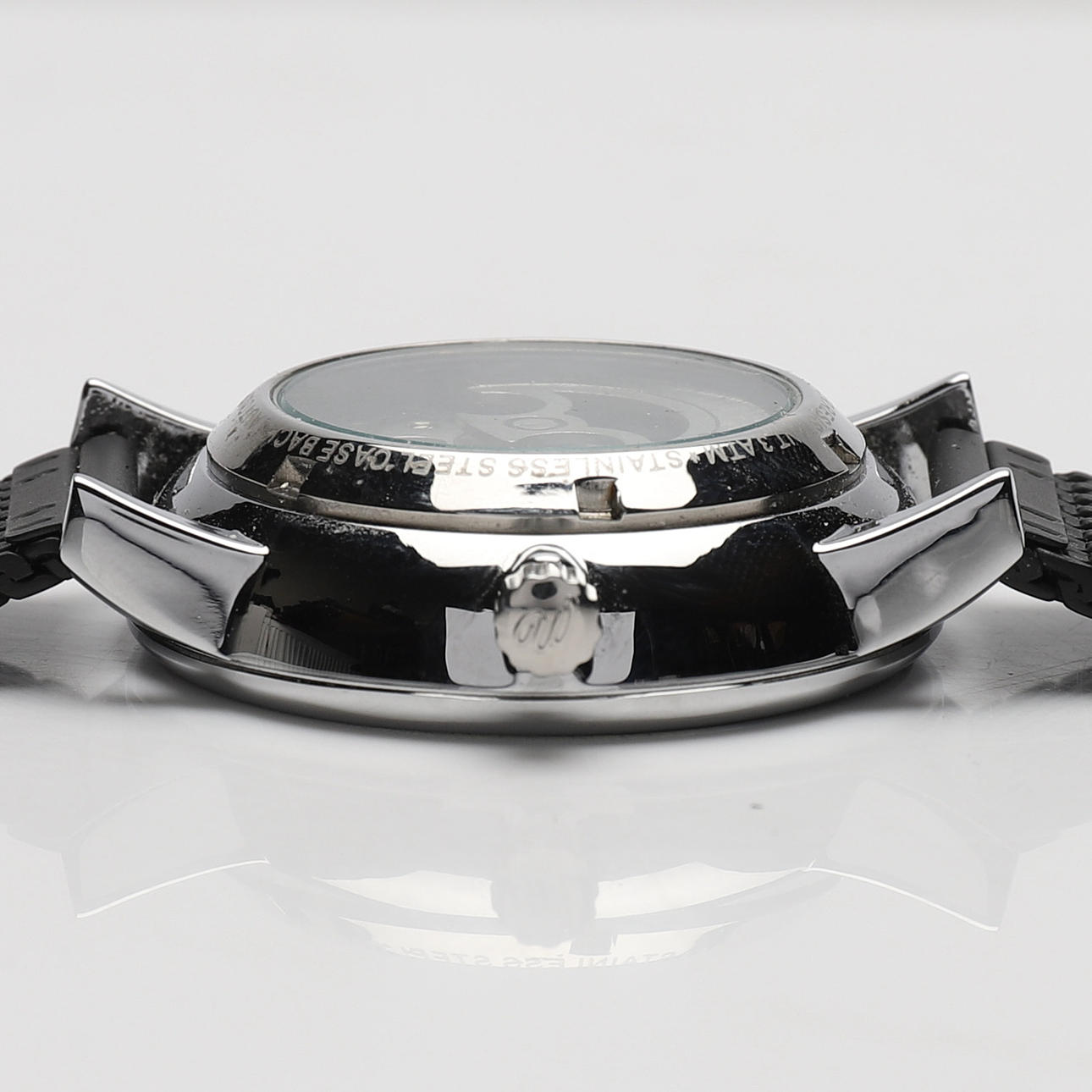 Automatic. Partially dark dial with stick indexes. Diameter about 40 mm.