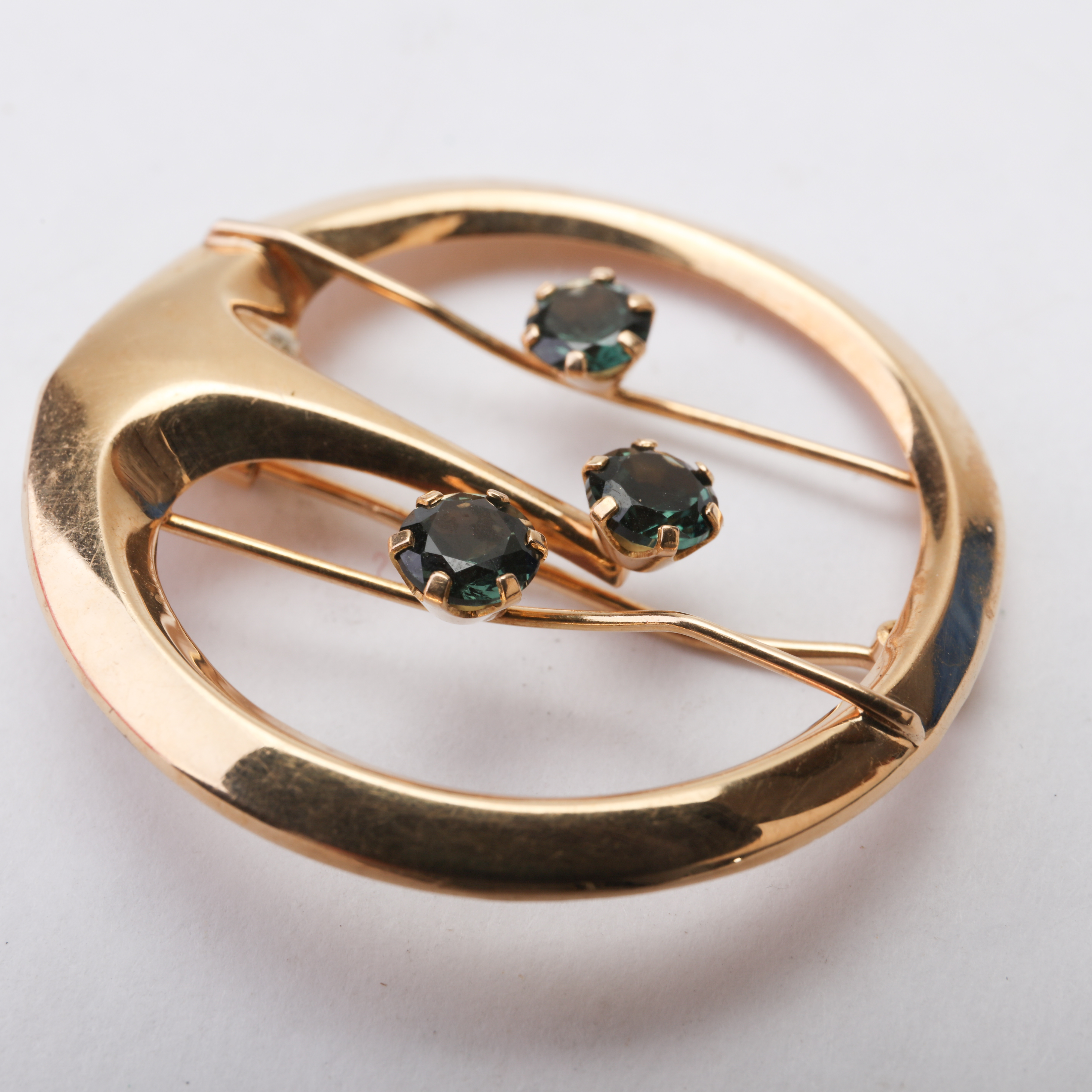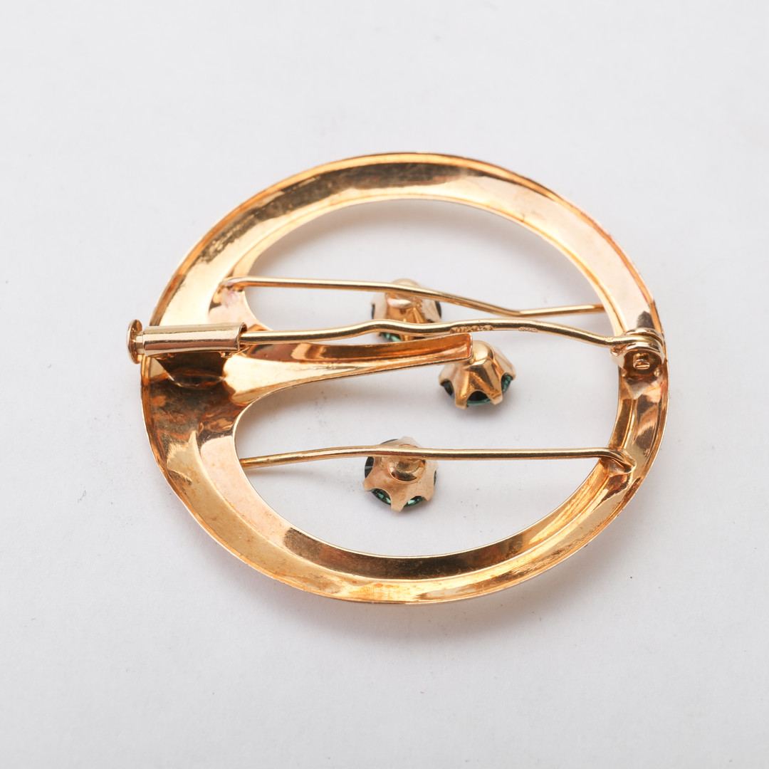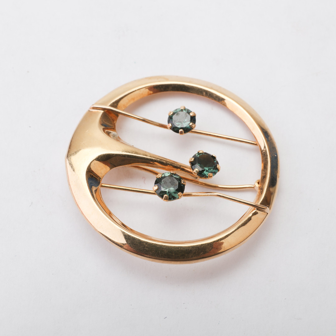 1691863. BROOCH, 18k, three green stones.