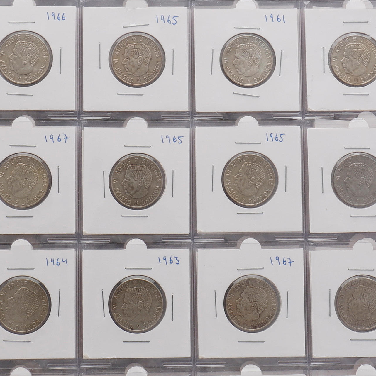 SWEDISH ONE KRONOS, 1942-1968, 595 PIECES.