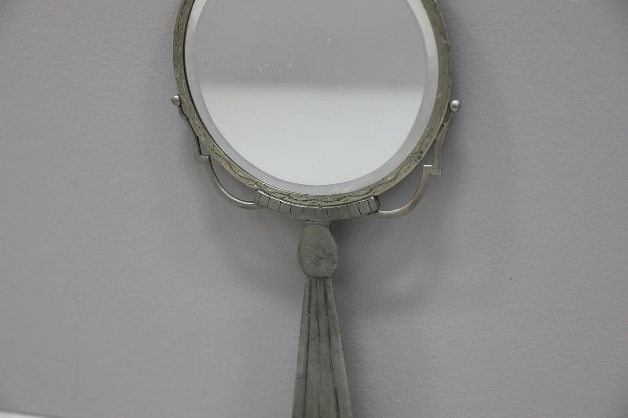 Faceted glass, tin frame. Height approx. 30 cm Width 15 cm.