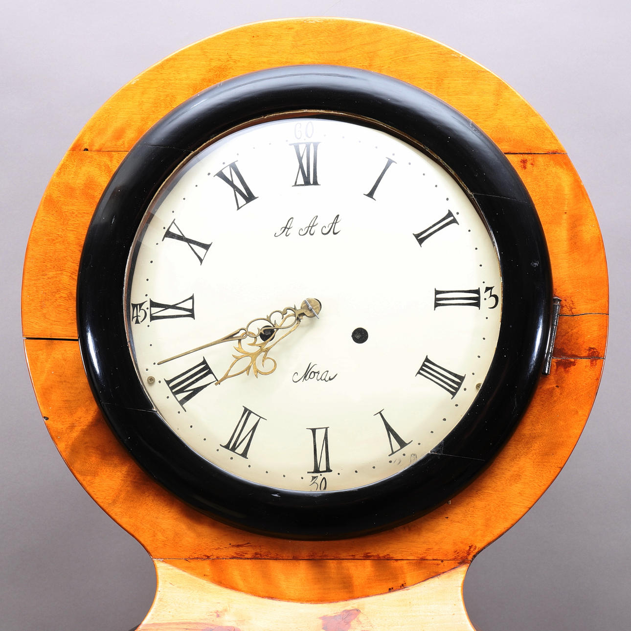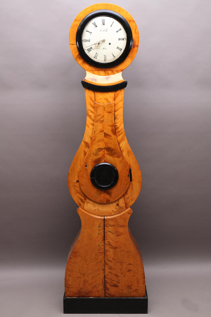 Dial marked AAA, Mora. Height approx. 197 cm, height with loose plinth 210 cm Width approx. 50 cm Depth approx. 18 cm.