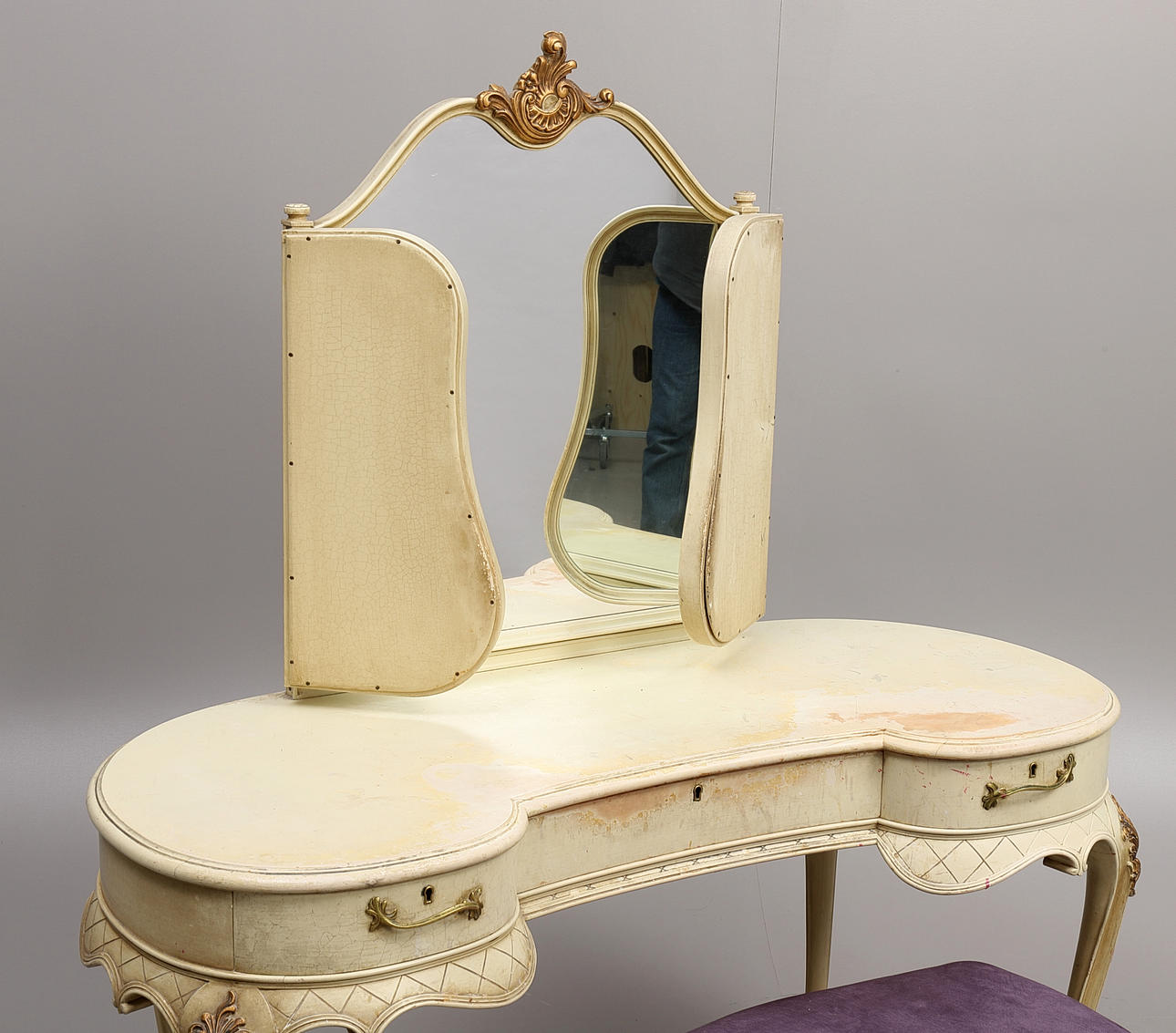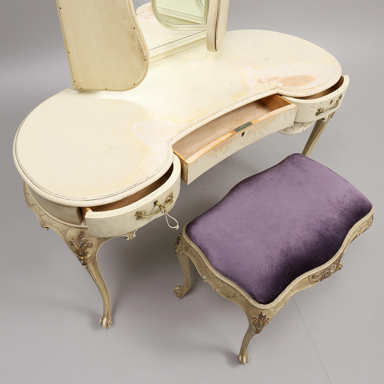 1703130. DRESSING TABLE with mirror and STOOL, rococo style, gilded details.