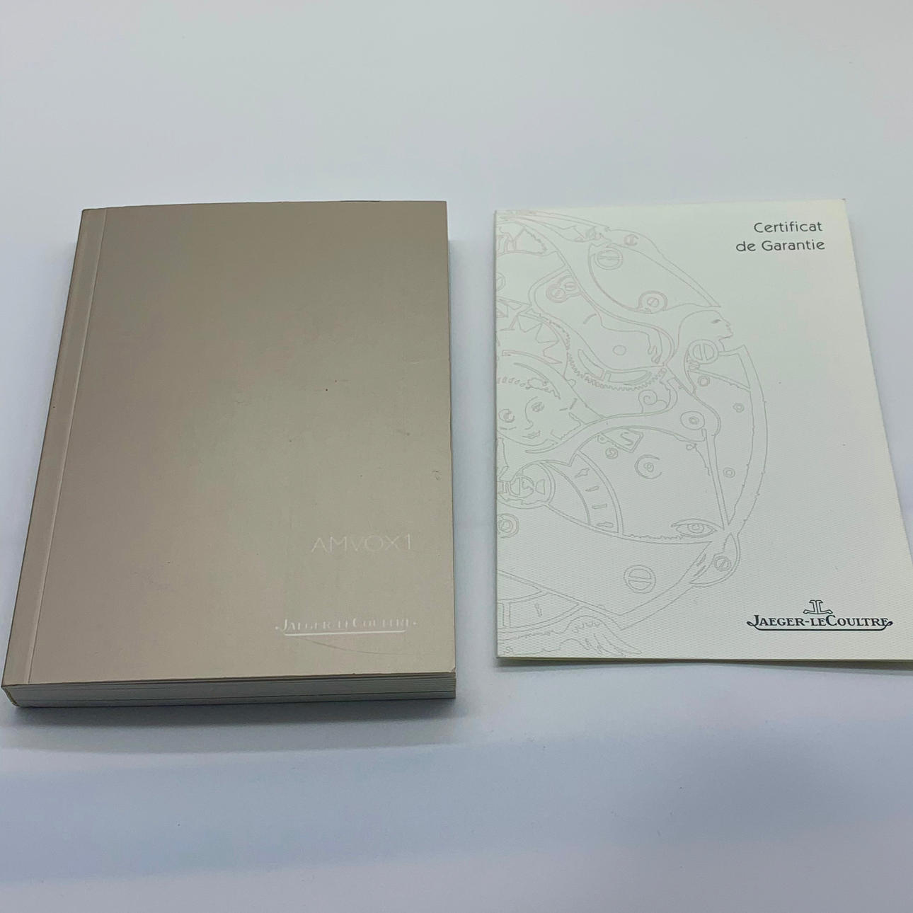The watch comes with a Jaeger-LeCoultre Certificate of Guarantee dated April 2006, instruction manual « AMVOX 1 » booklet, original fitted presentation box with metal black engraved « AMVOX1 Alarm, Limited Series of 1000 pieces in Titanium, Specially handcrafted by the Manufacture Jaeger-LeCoultre for Aston Martin », flanked by Jaeger-LeCoultre and Aston Martin logos, and outer packaging.
