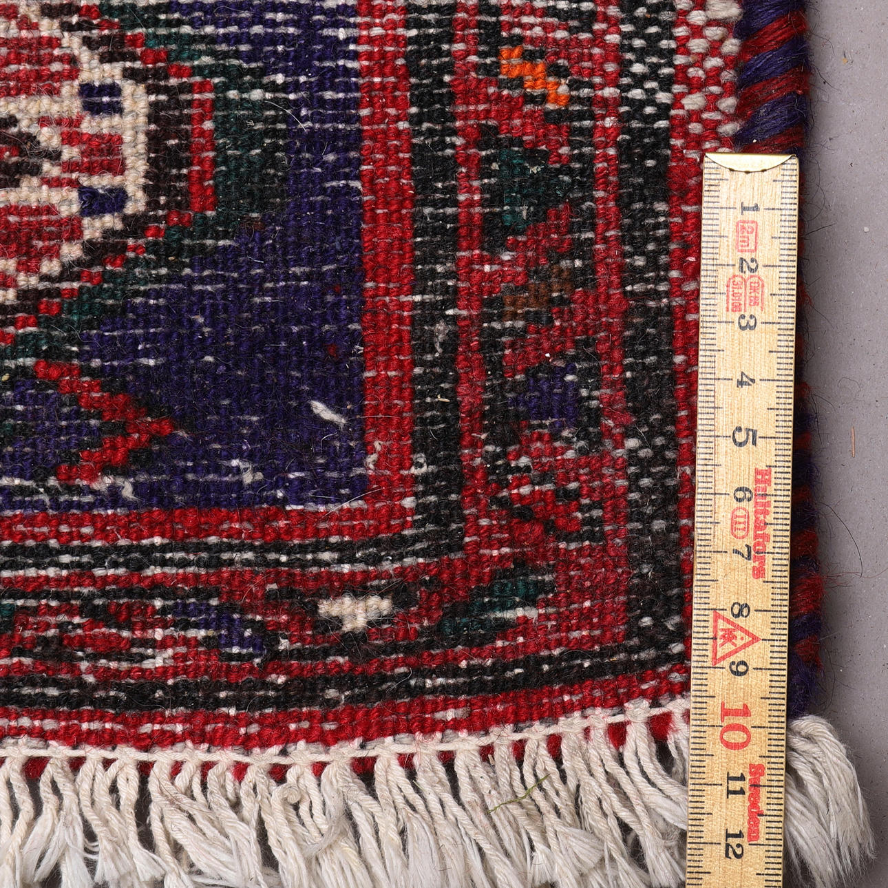 Normal wear and tear, tufted fringes.