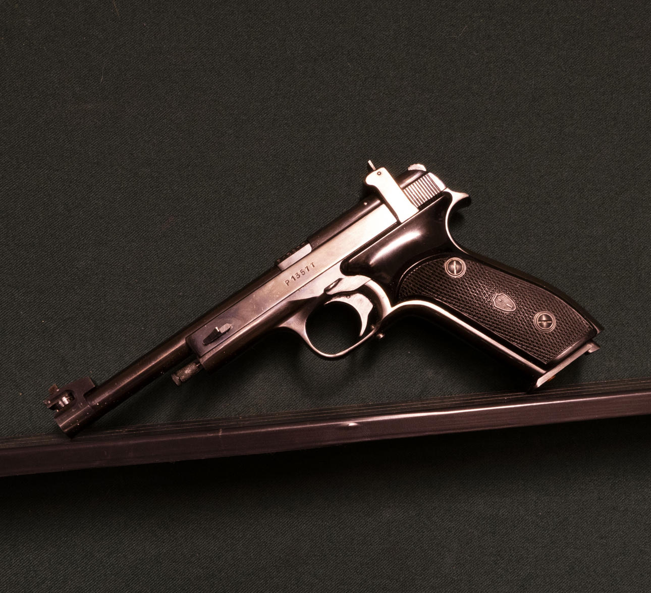 Pistol Russian Semi-automatic make Vostok. Caliber 22lr. Extension no. P1357T. Spout length 15cm. Adjustable micrometer sight. Black piston sides. original bag with 1 extra magazine and accessories included.