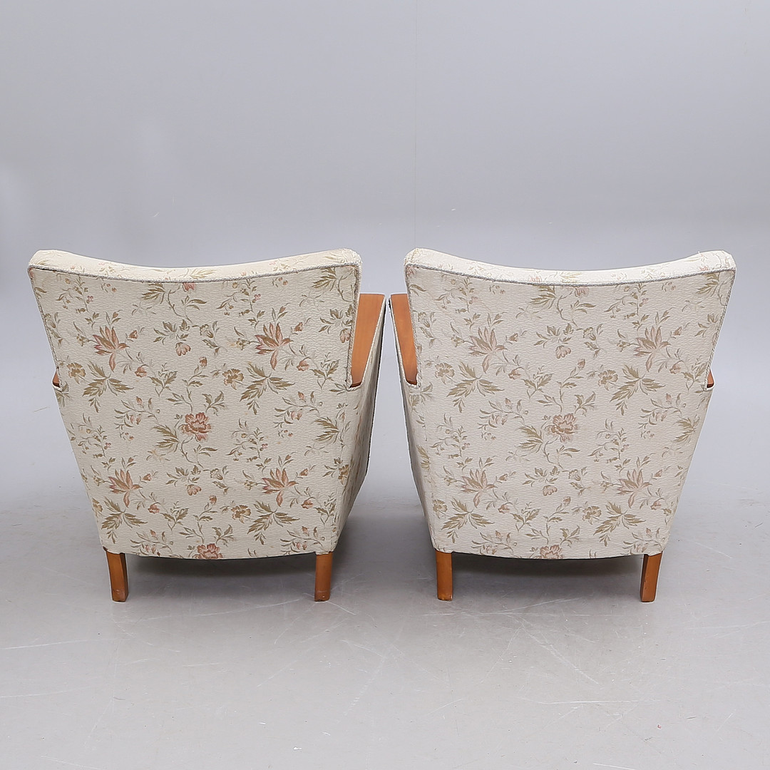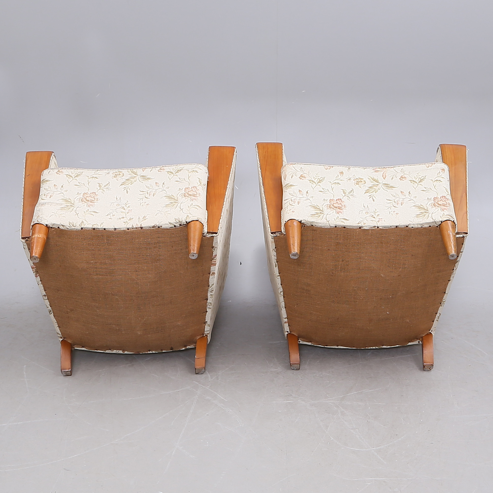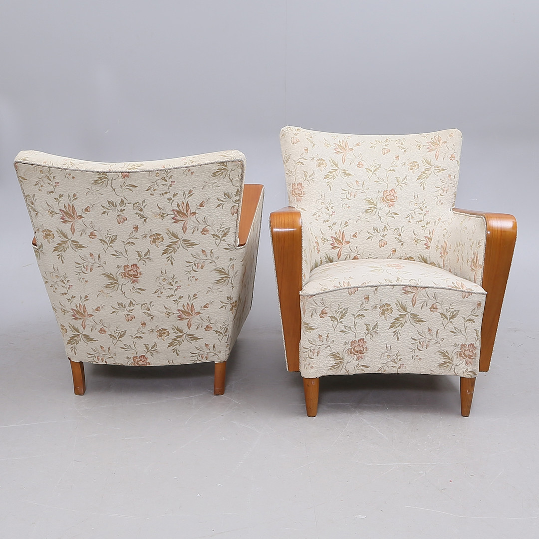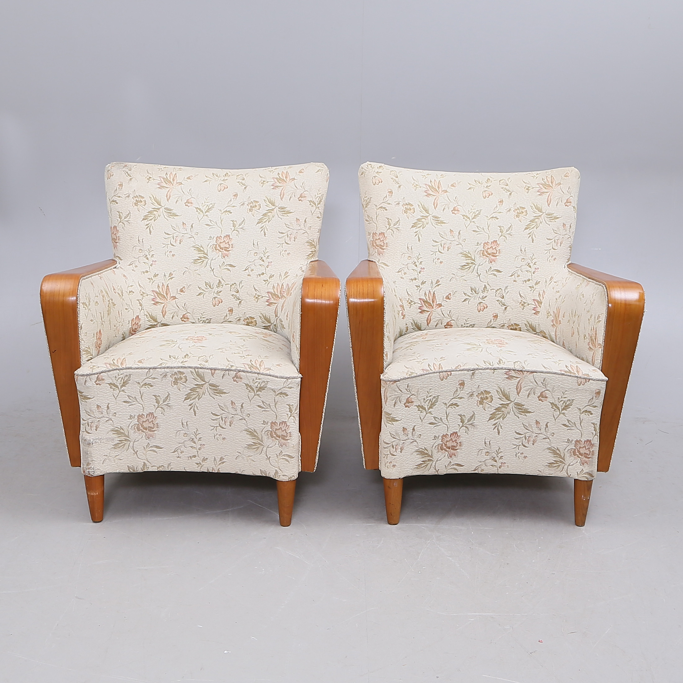 1715516. ARMCHAIRS, 1 pair, textile/wood, 1900s.