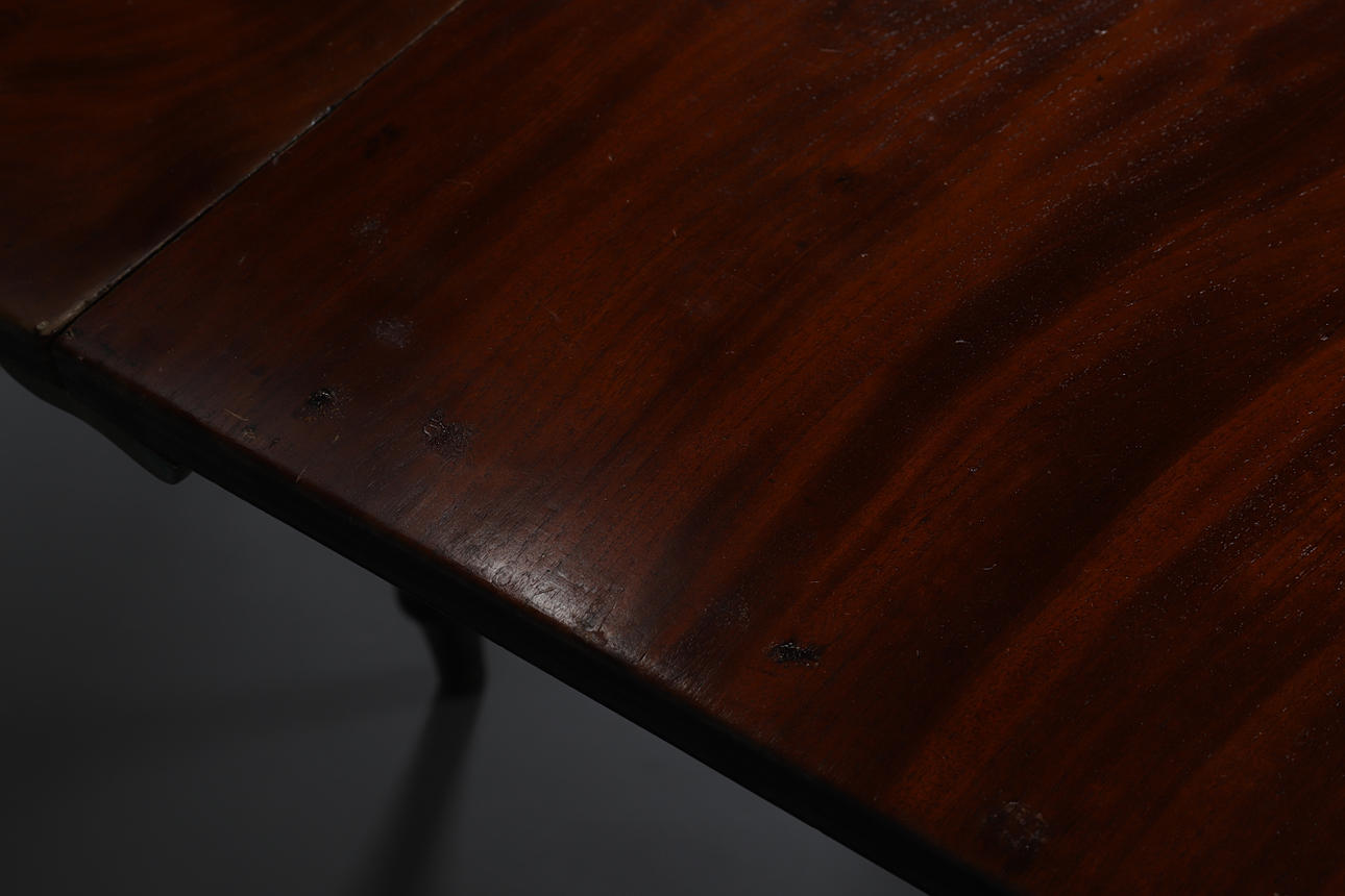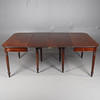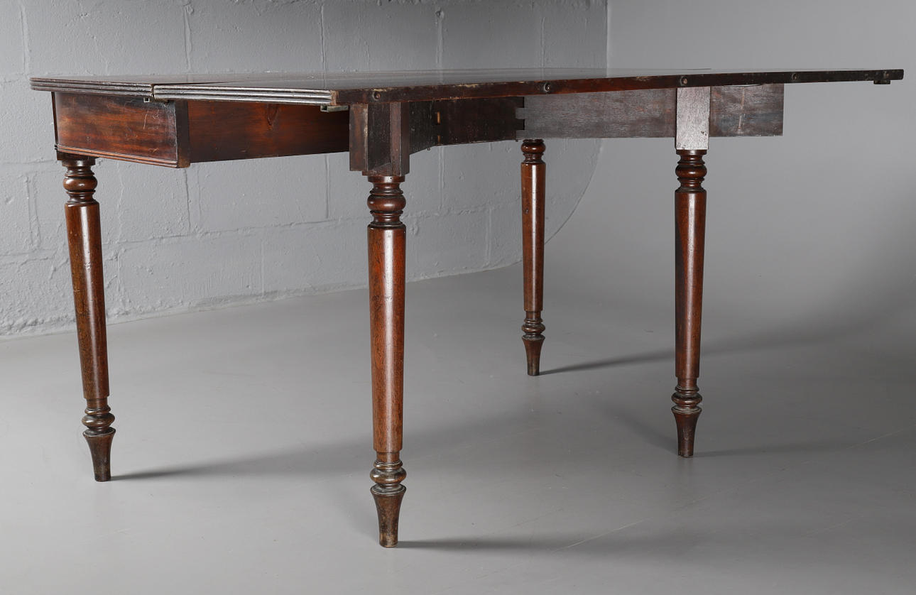 1720088. A LATE REGENCY MAHOGANY DROP LEAF DINING TABLE.