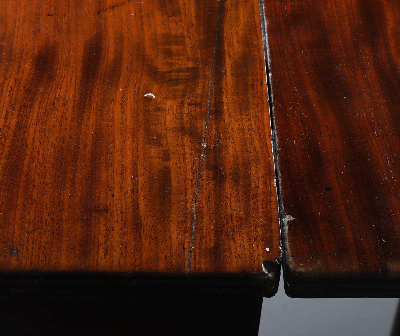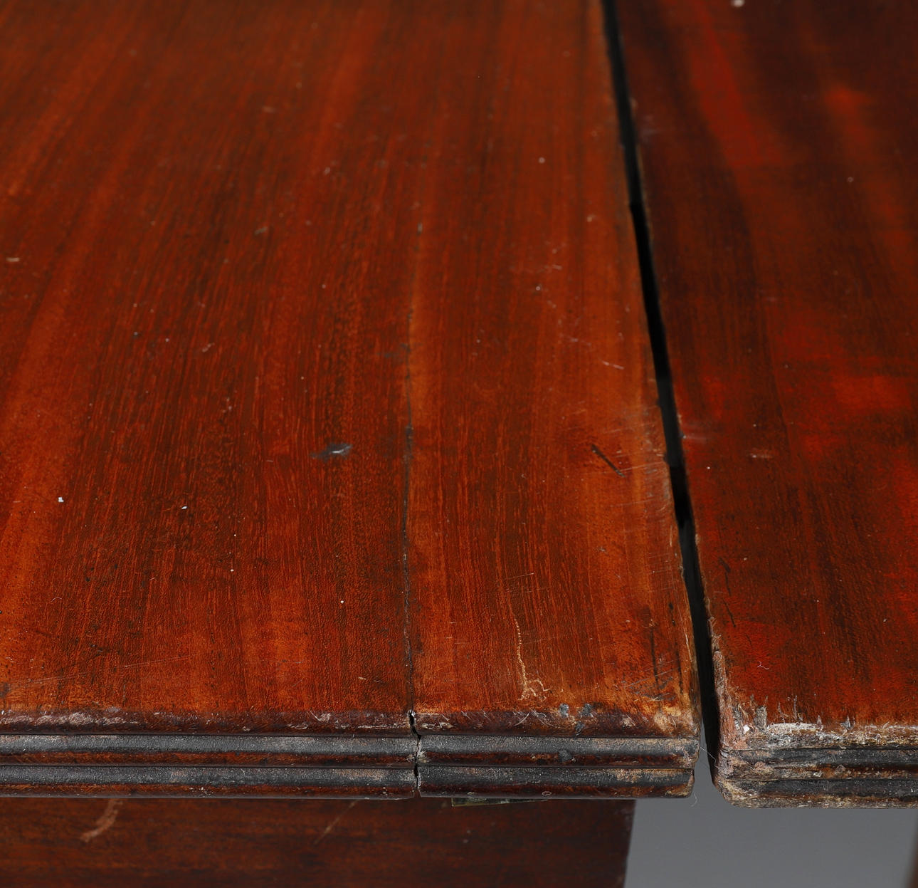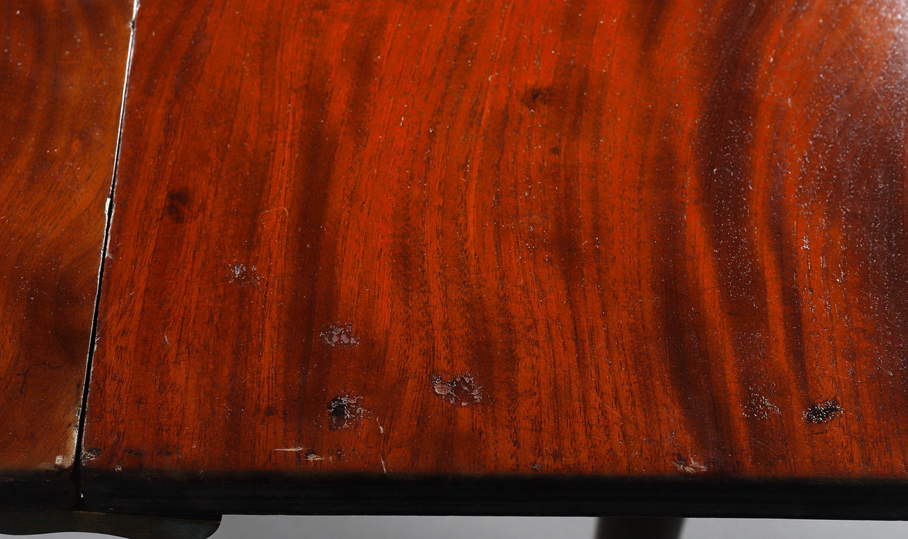 The legs with some marks, knocks and scratches.