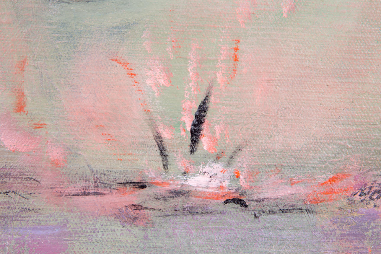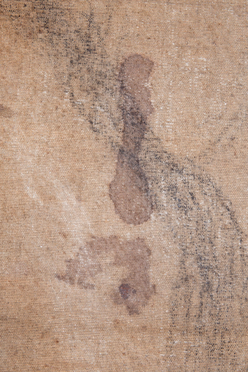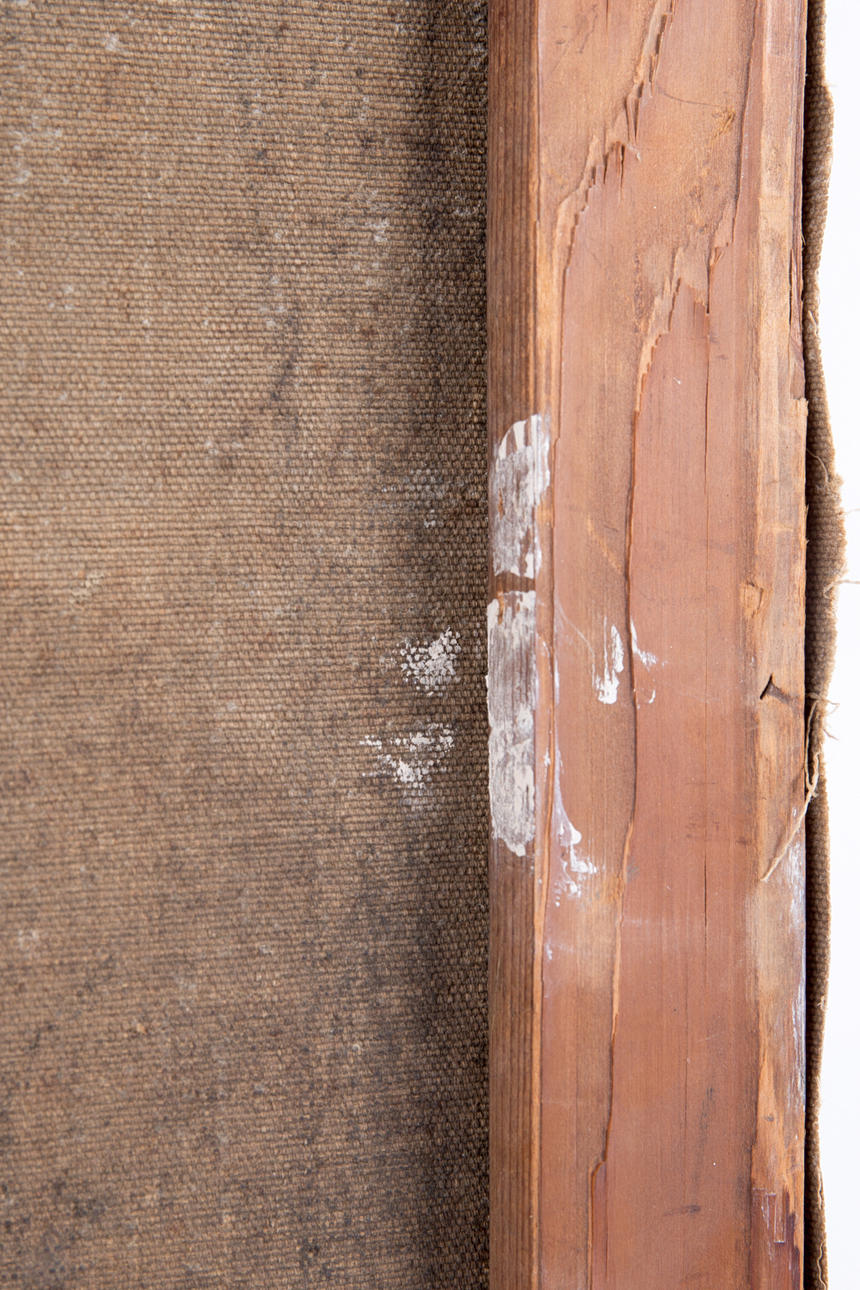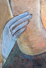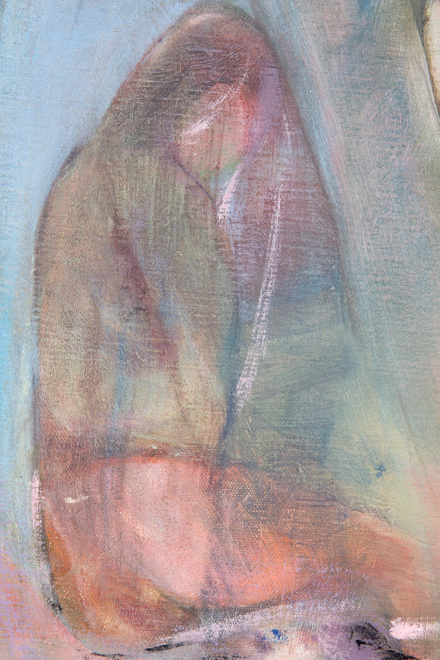 Unknown artist, painting, cubist composition, oil on canvas. Abstract composition with figurative, cubist elements in blue, brown and red, 90x61cm.