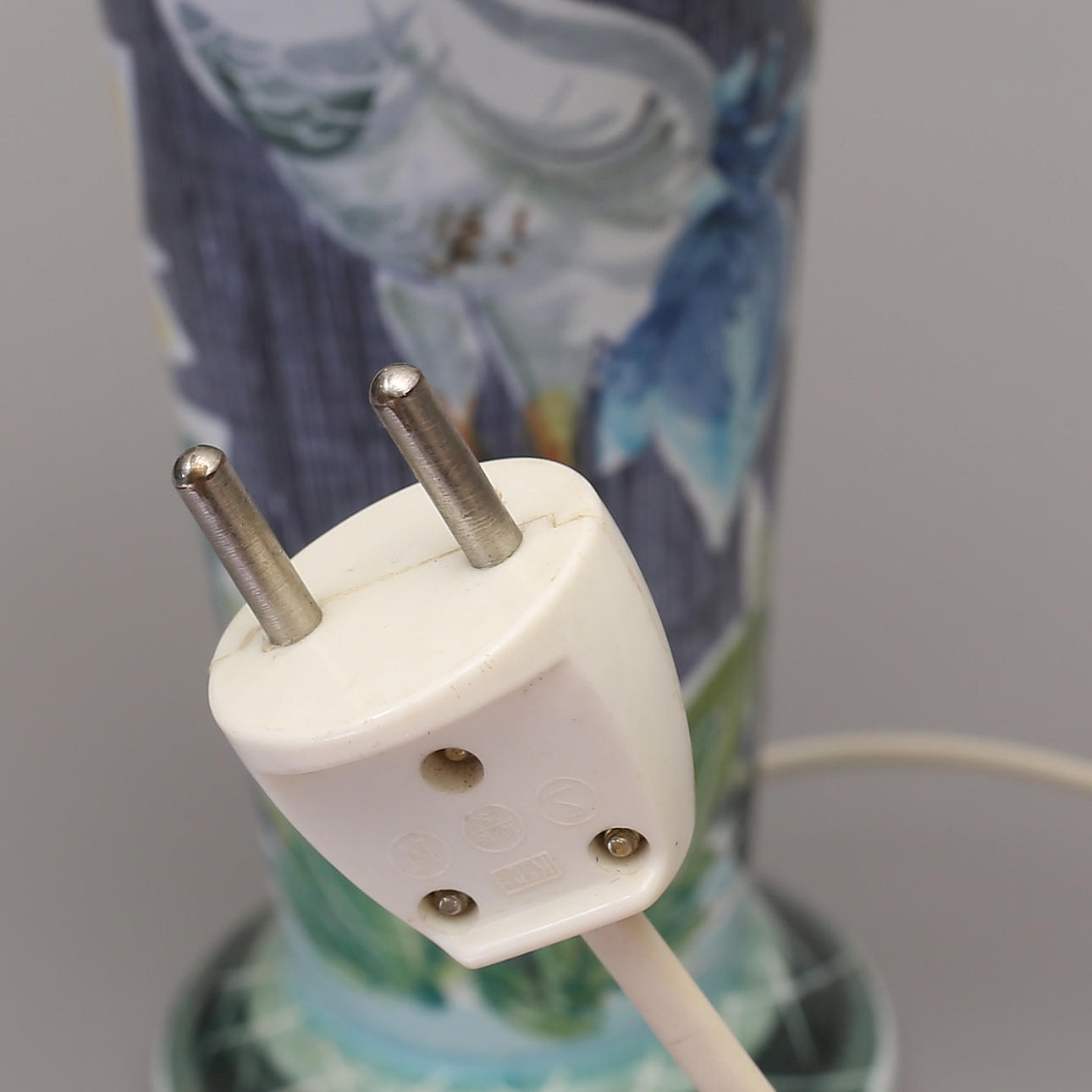 Broken plastic ring at lampshade, old electric. Print marks on screen.