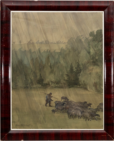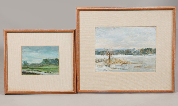 signed, oil on canvas, 50 x 60cm, framed 62 x 71cm overall, L Bowmar - 'Our Denna', signed and dated 1996, oil on board, framed, 40 x 30cm overall, J Gibson - Wild's Winchester, signed and dated '91, watercolour, framed, 24 x 29cm overall and Rob Martin, 20th Century - 'The Beach at Beer', signed, watercolour, framed, 32 x 40cm overall (4)