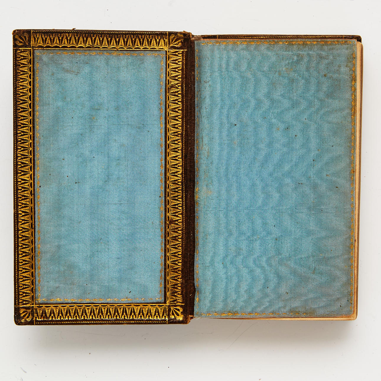 12 mo. 105 x 67 mm. (4), 917 pp. Well-preserved brown contemporary long-grained morocco with richly gilt spine with raised bands, tooled and gilt boards, all edges gilt. Gilt inner dentelles and gilt-framed blue silk panels on board insides and end-leaves. Inner hinge reinforced with paper strip between title leaf and previous blank.