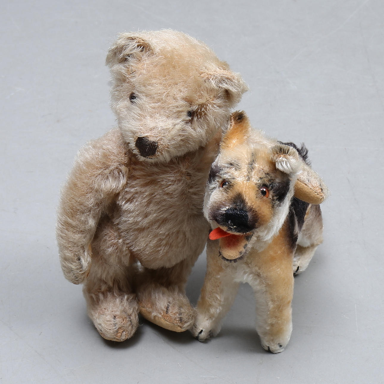 1732399. STEIFF, 2 stuffed animals, teddy bear and German Shepherd.