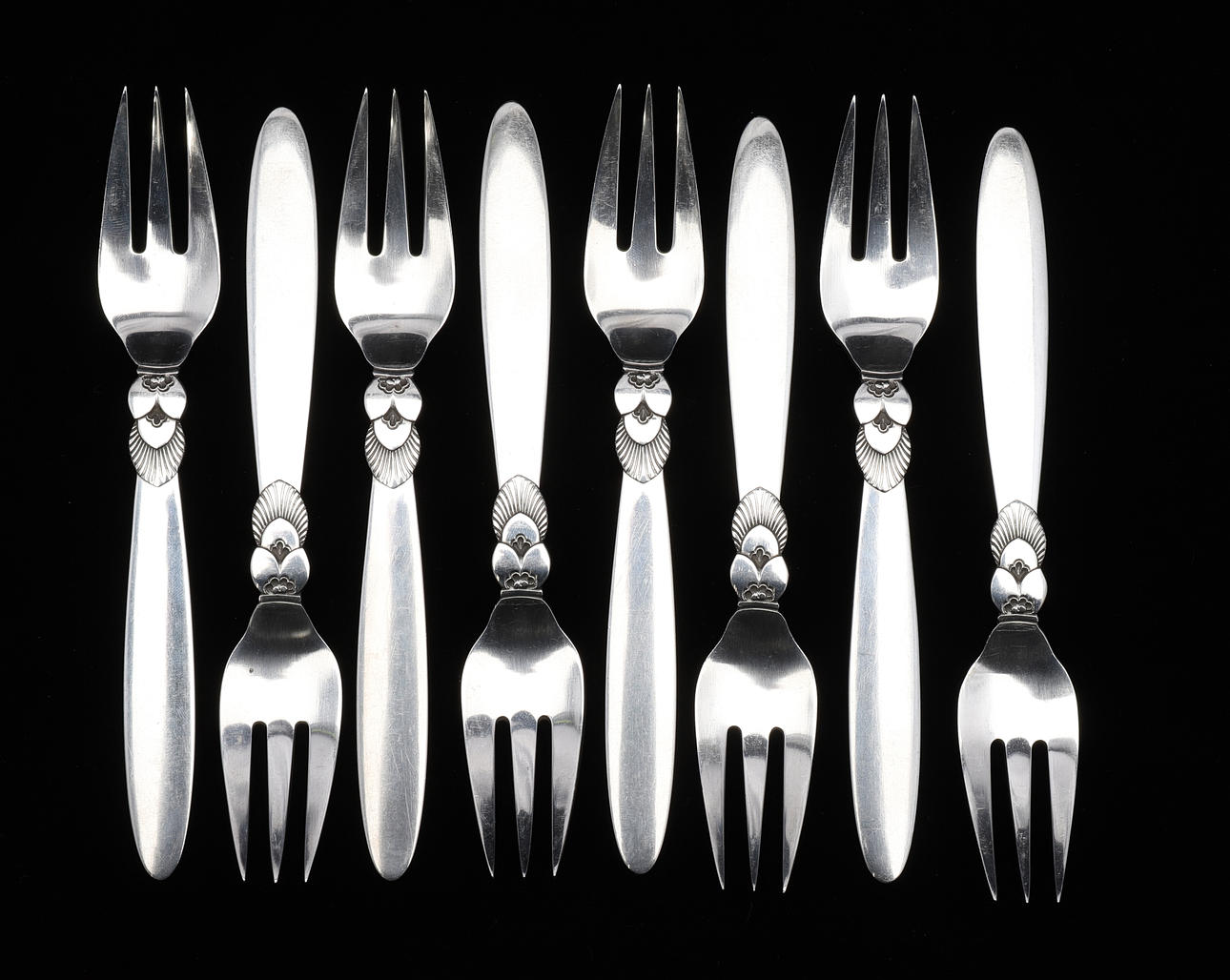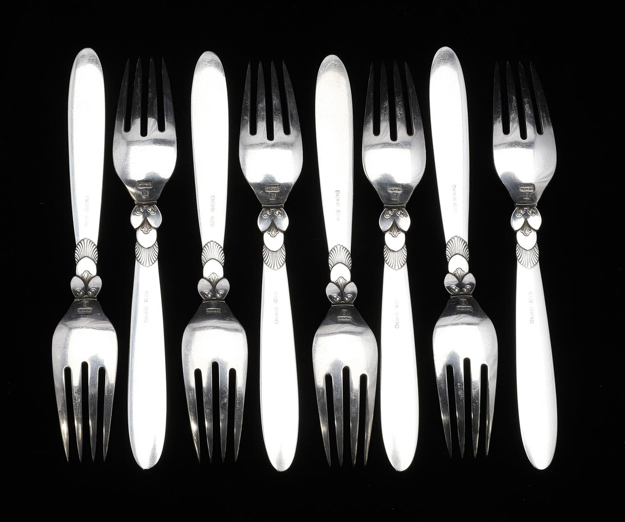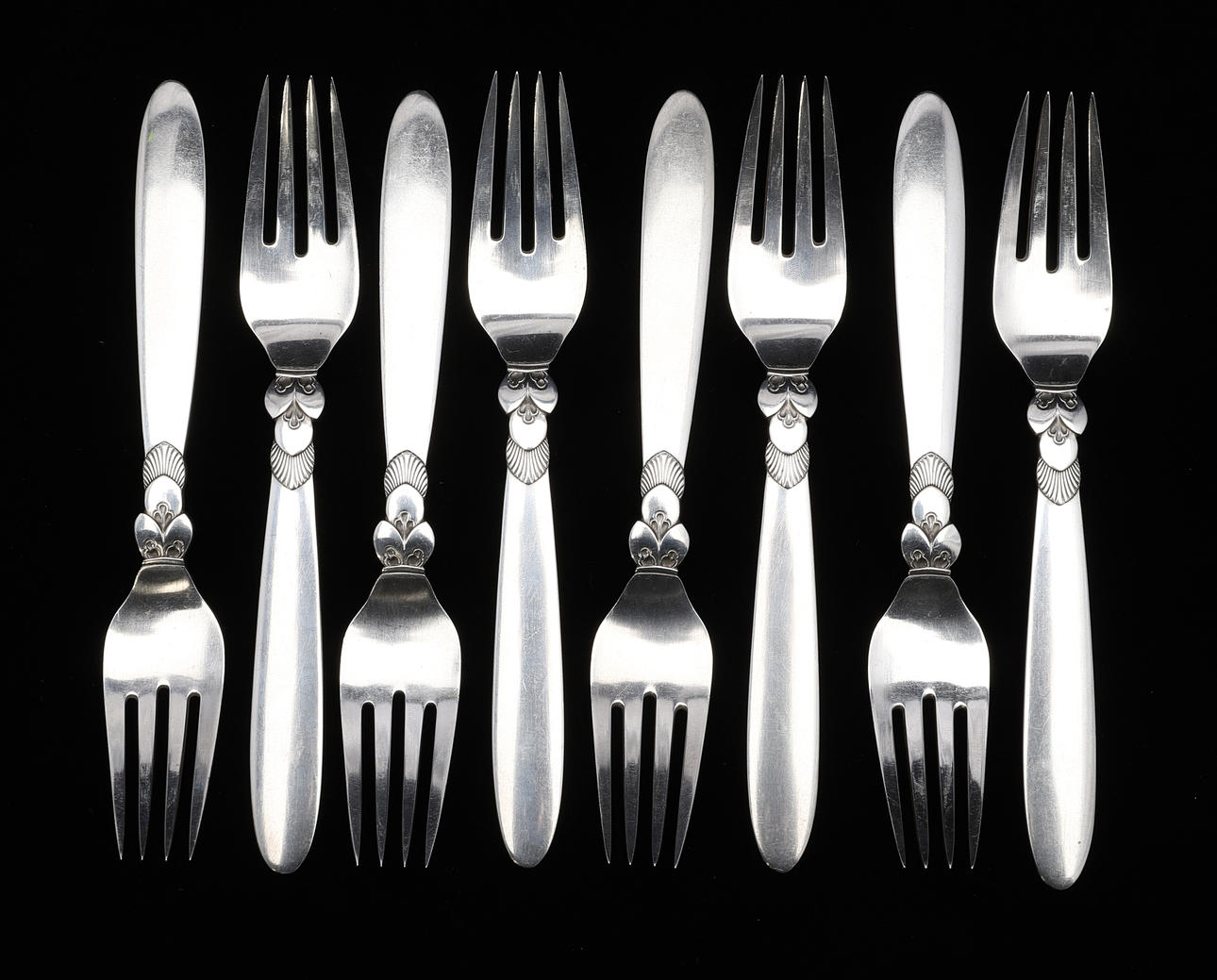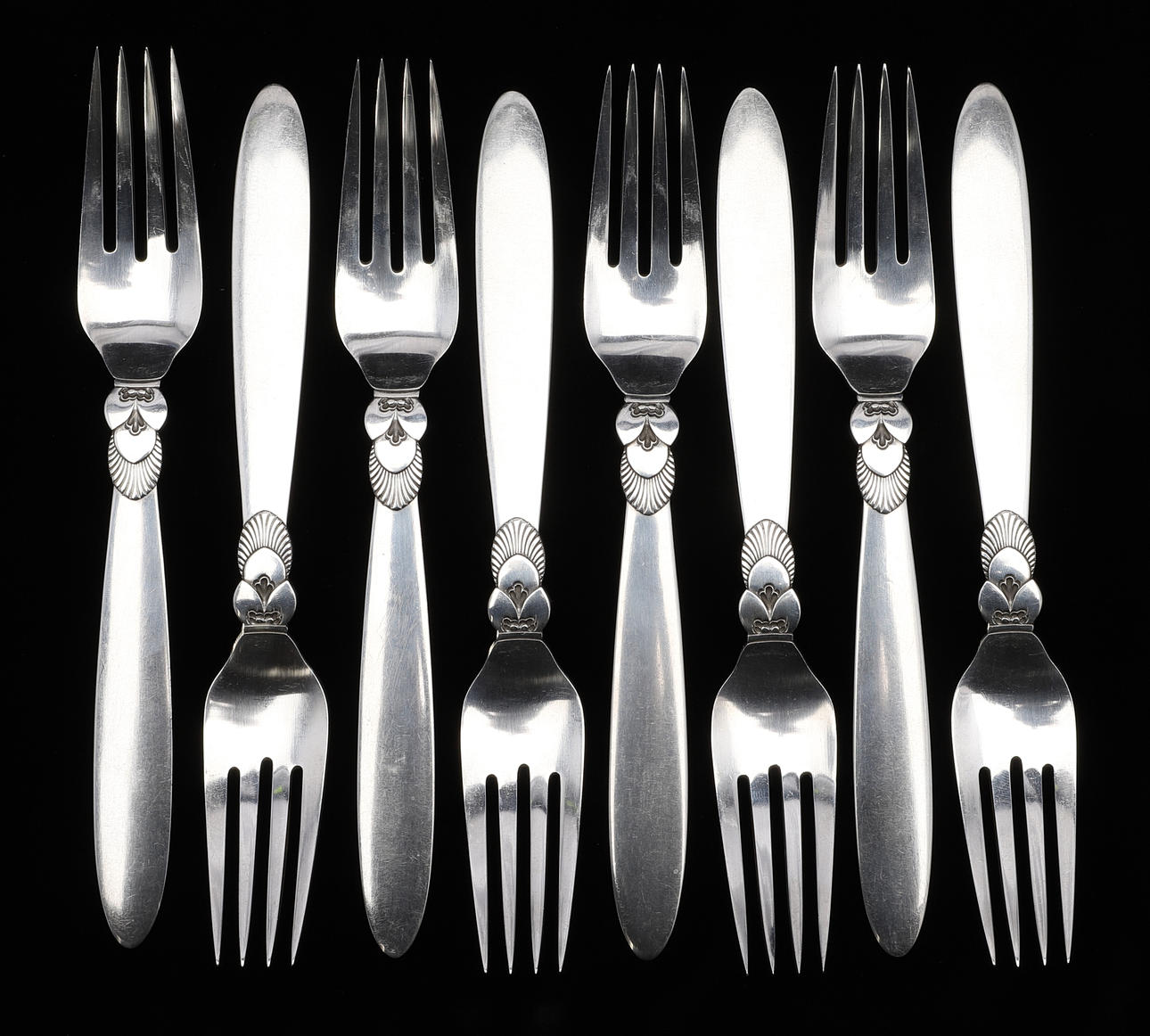 8 dinner forks, maker’s marks, import marks for London 1935, 19.5cm,