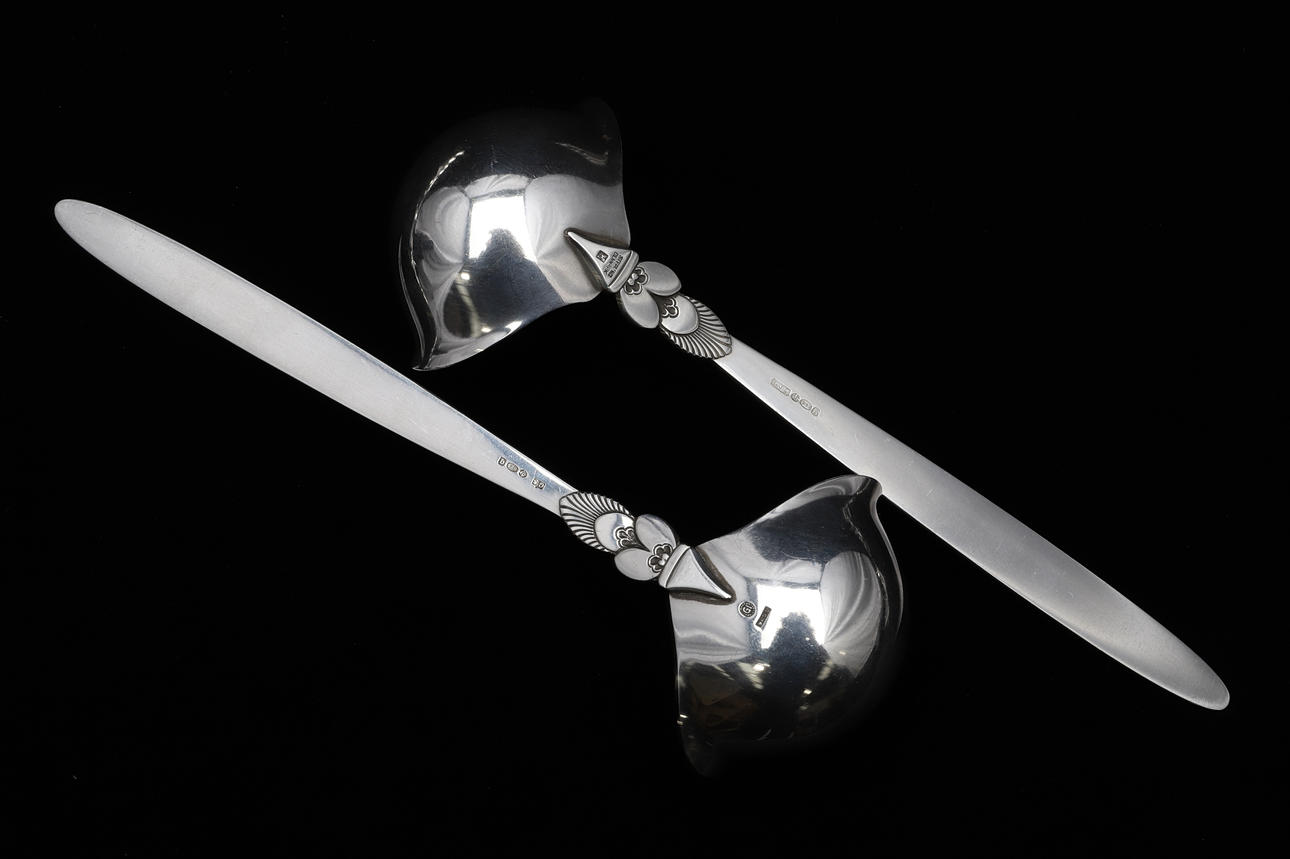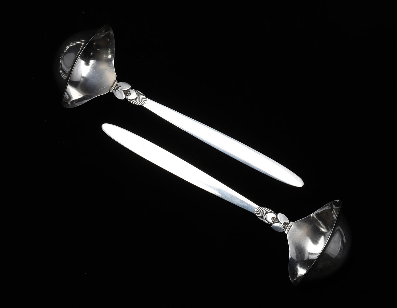 pair sauce ladles, maker’s marks, 1 with maker’s mark G.S. import marks for London 1931, the other 1936, 19cm,