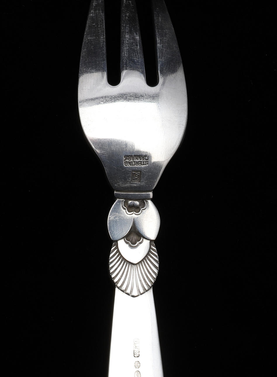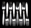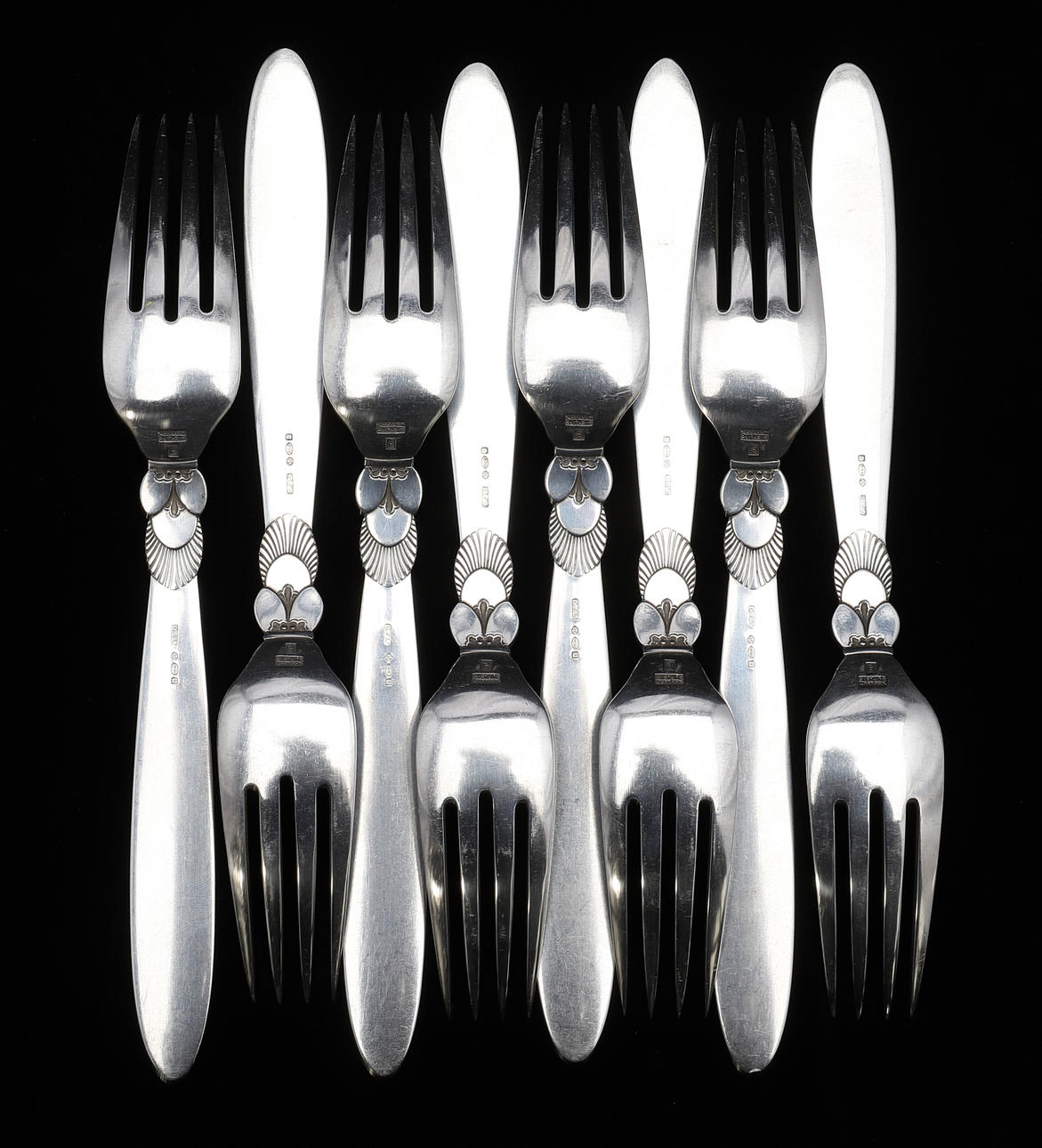8 three pronged fish forks, maker’s marks, 6 with import marks for London 1931, 2 for 1935, 16cm,