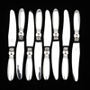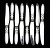 8 supper knives with stainless blades, maker’s marks, 7 with import marks for London 1935, 1 for 1936, 19.5cm,