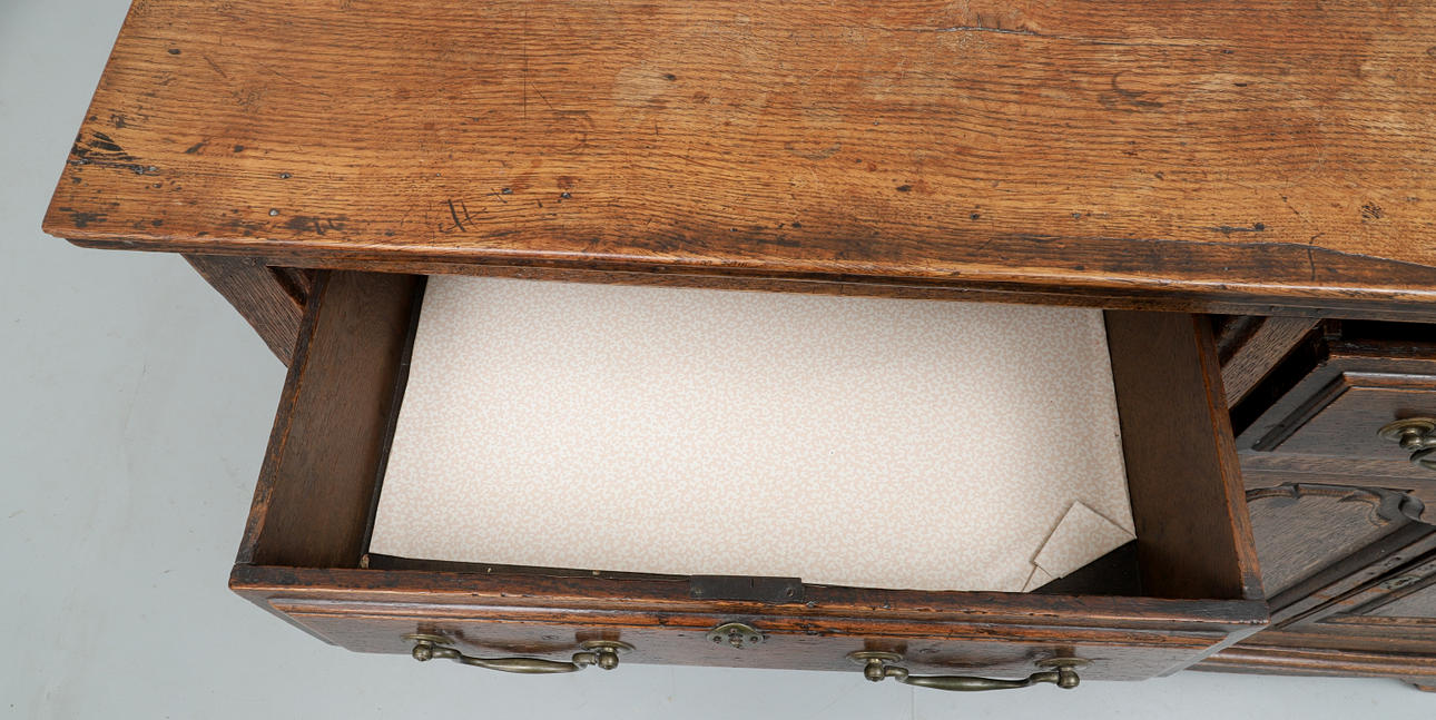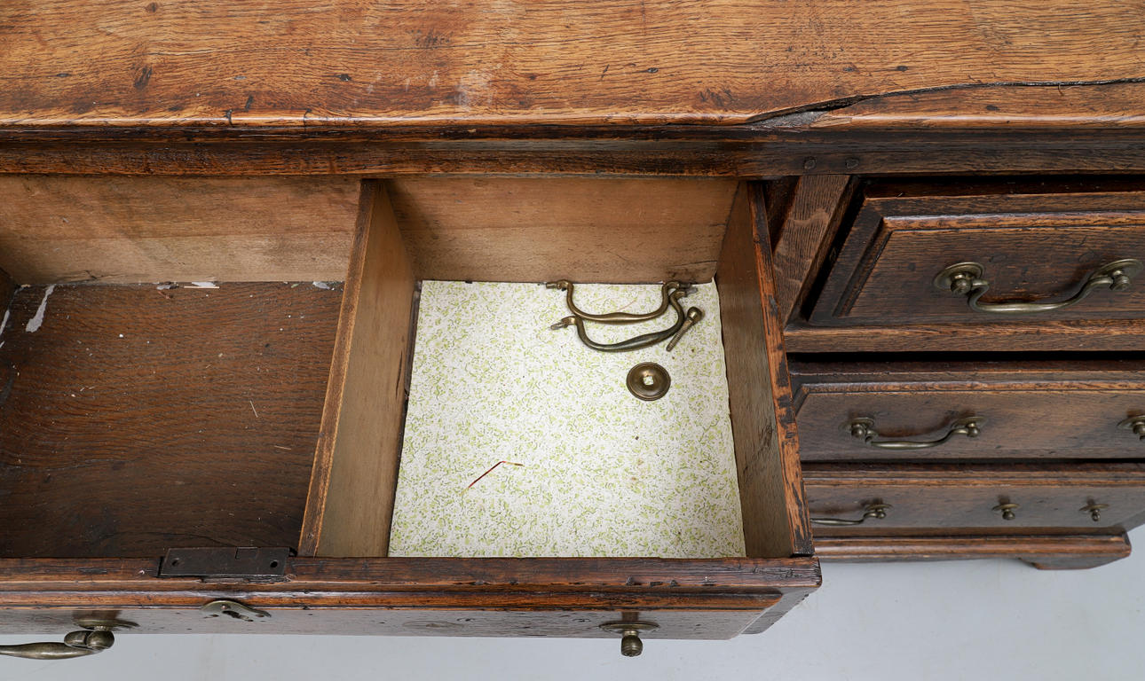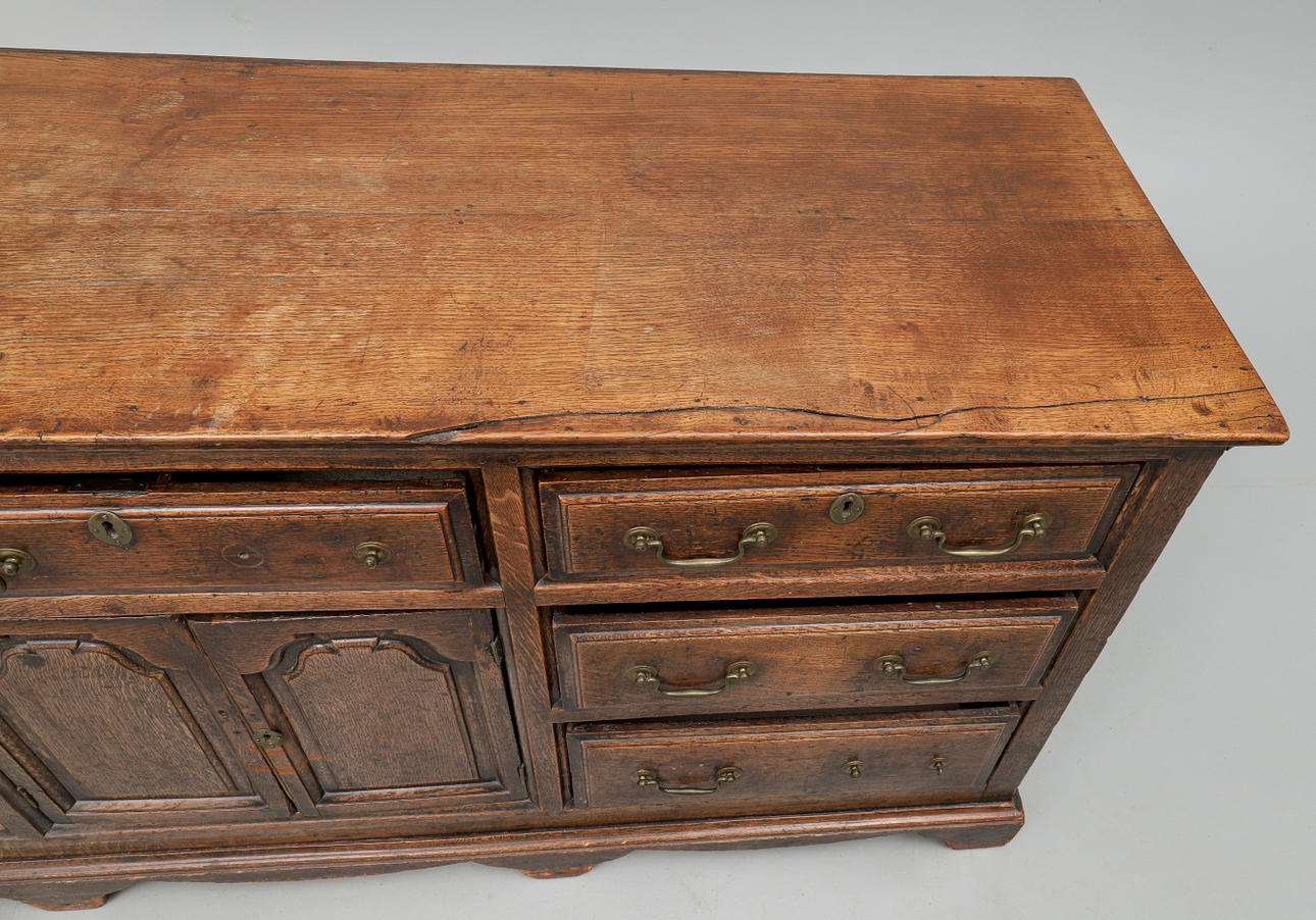 1740701. A GEORGE III OAK LOW DRESSER.