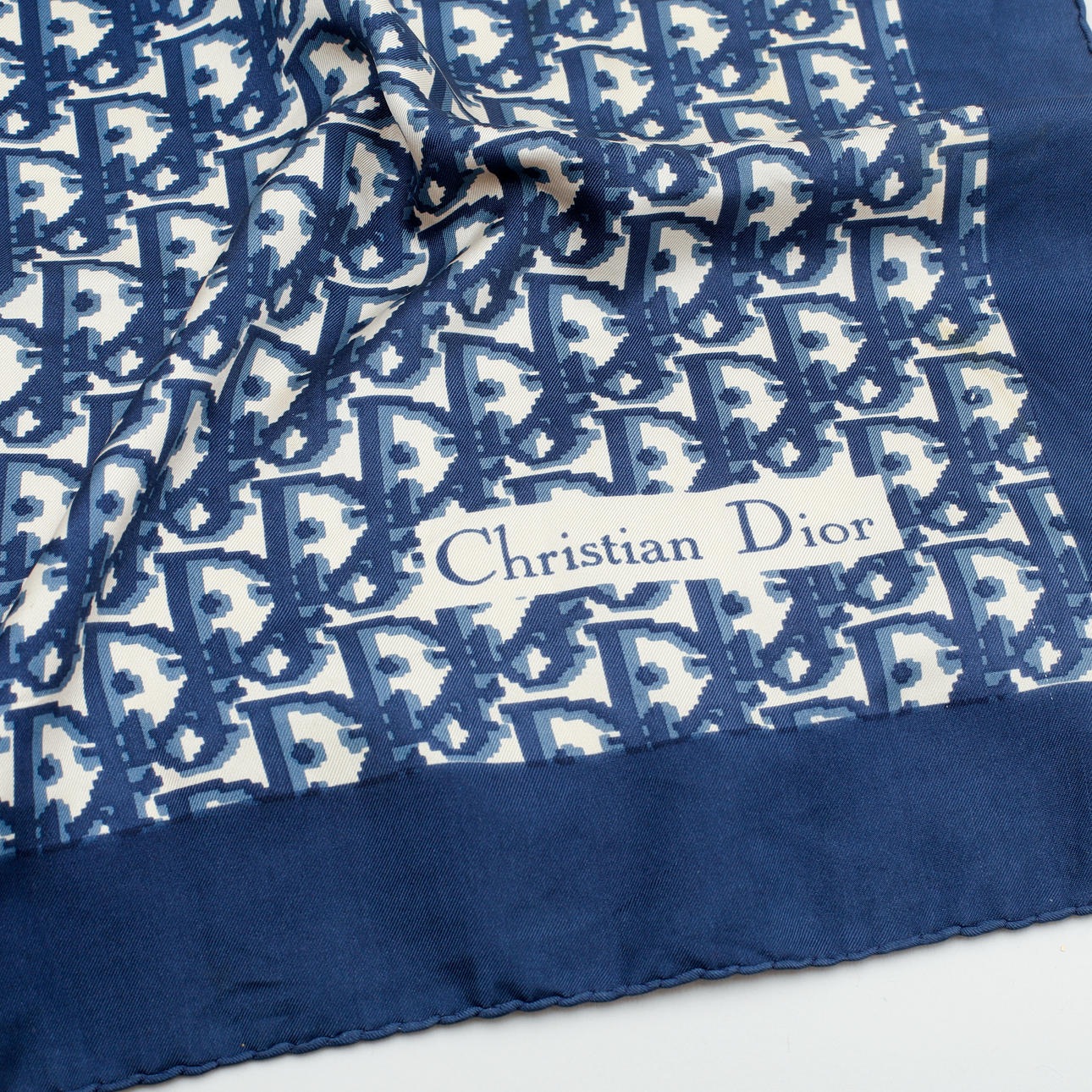 Scarf: Silk. About 76 x 79 cm. Marked "Christian Dior".