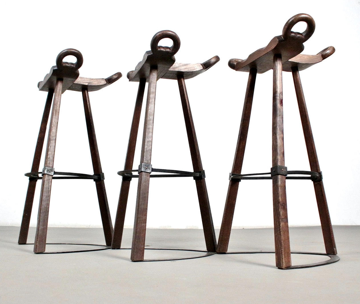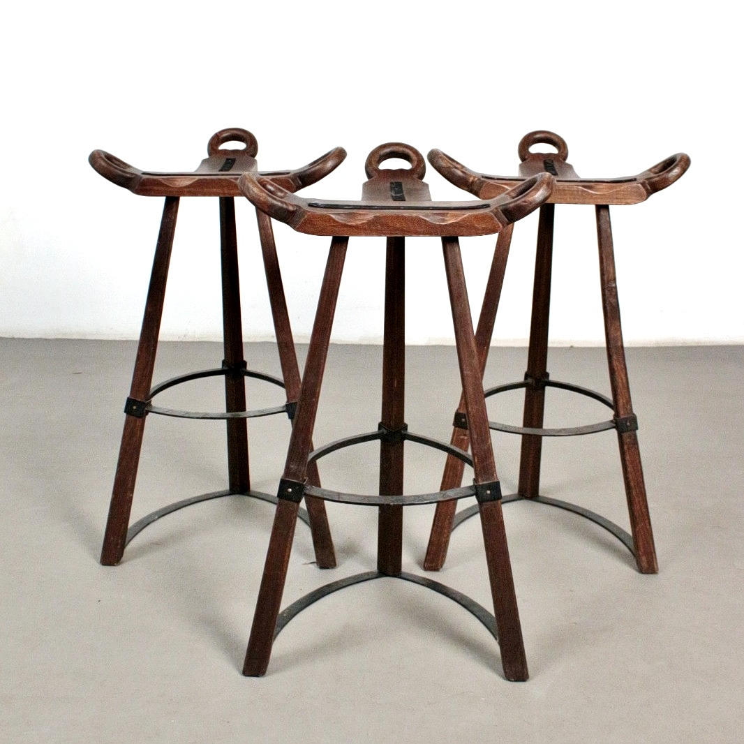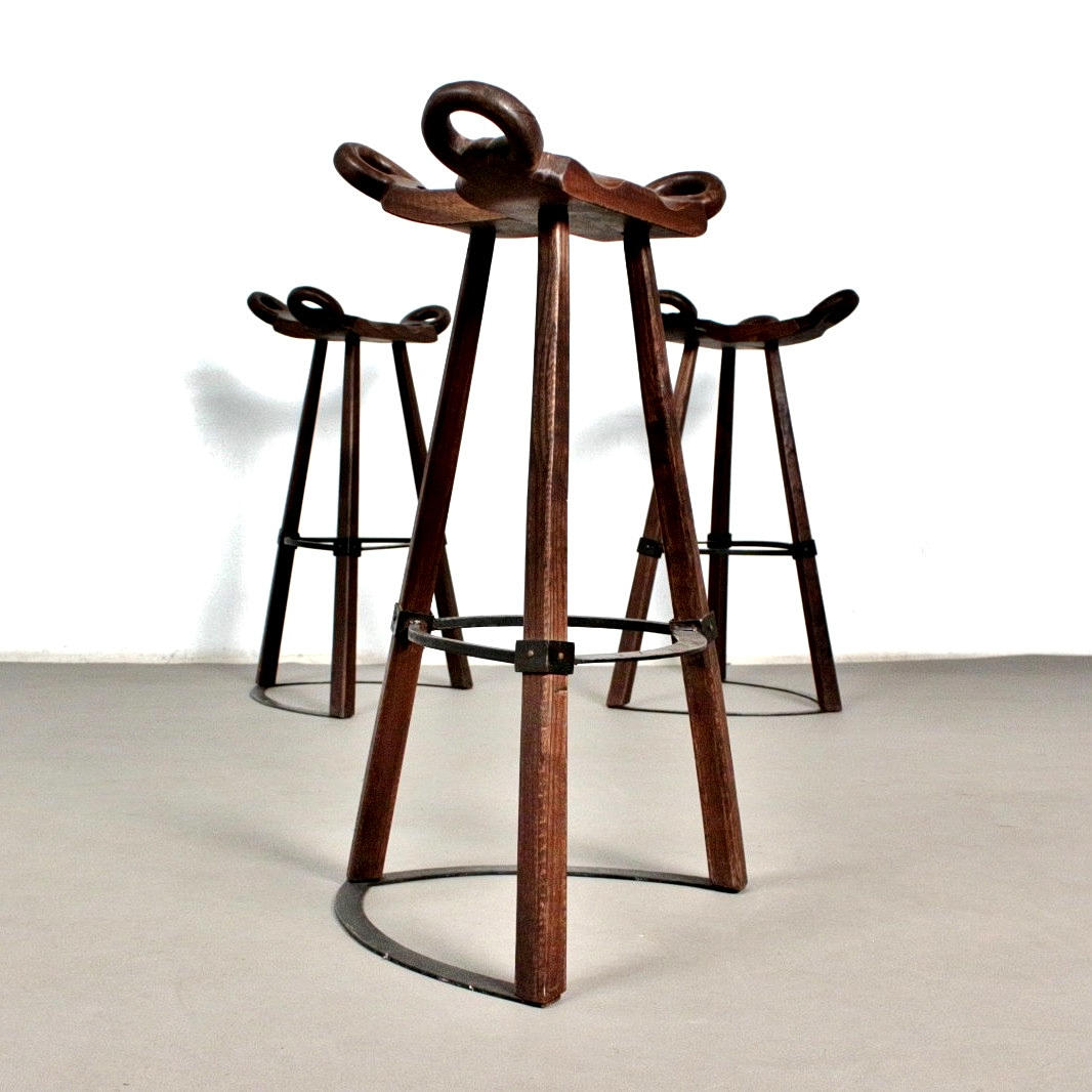1741544. Set of three tripod BRUTALIST barstools model Marbella.